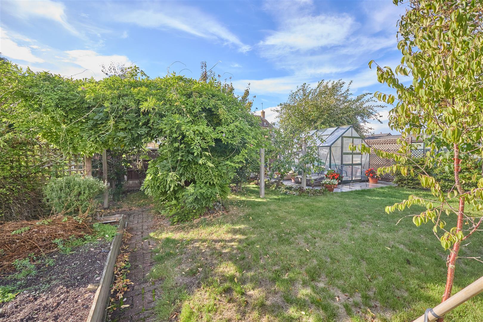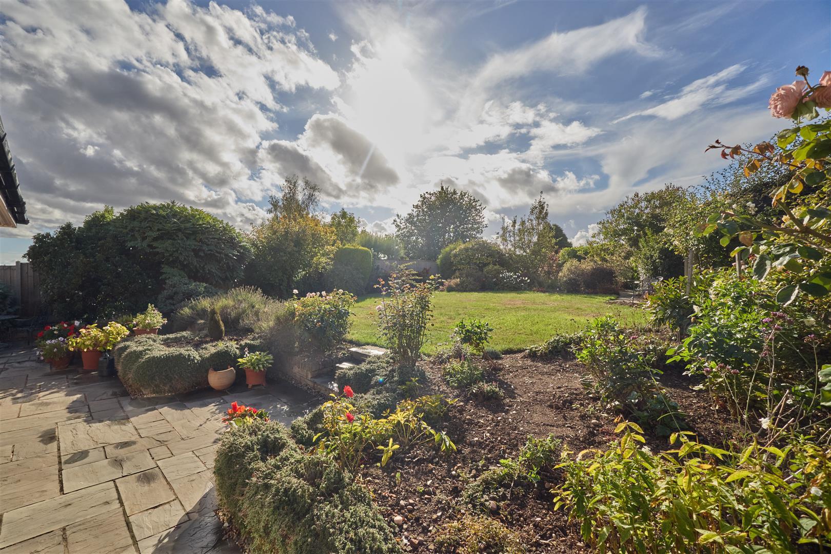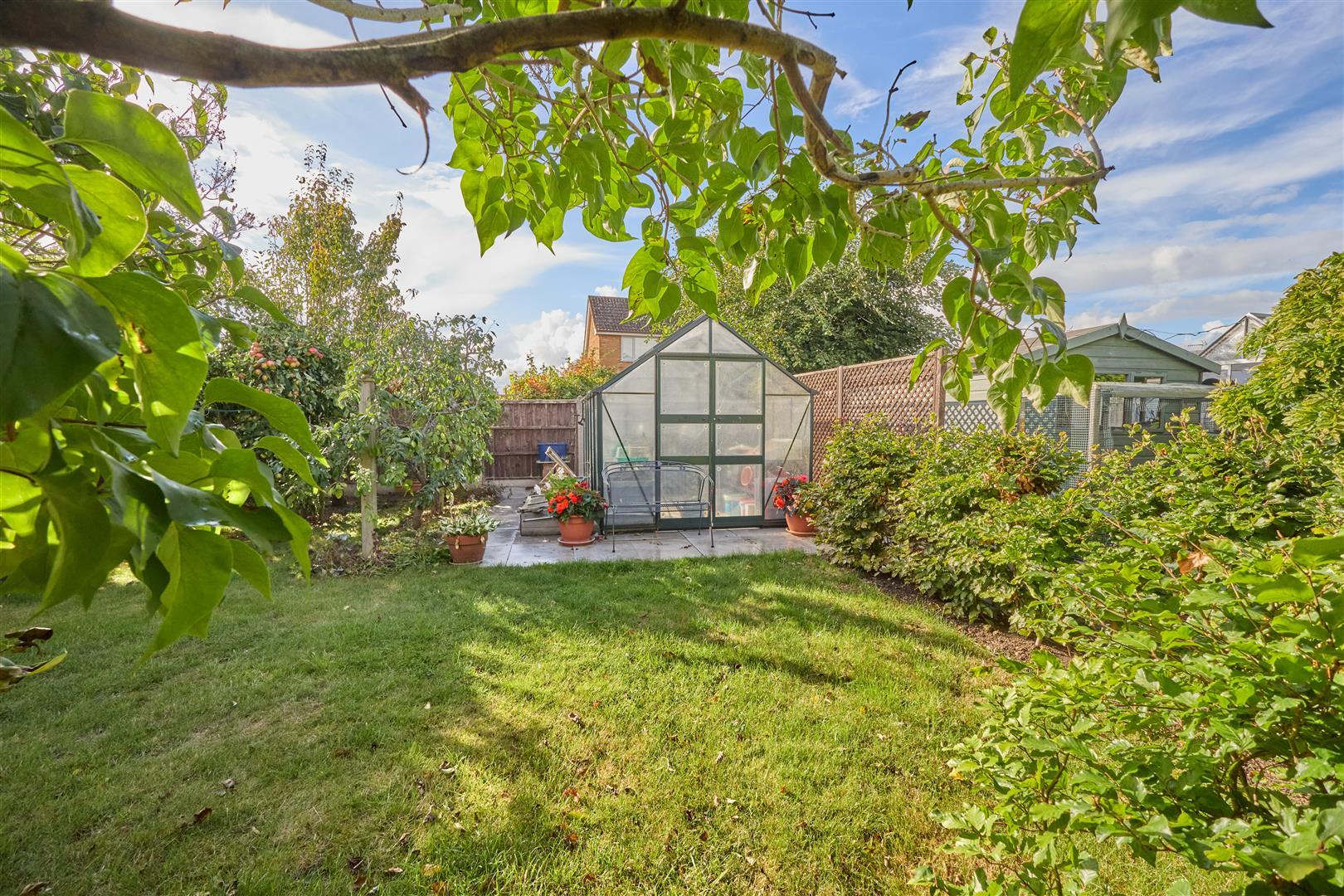 The property is nicely situated set well back from the road on a large plot with front garden which is laid to lawn with well stocked beds and trees, stoned area and wide tarmacadam driveway. The driveway leads to a double garage which measures 4.77m x 5.27m with electric up and over door to front, electric fuse board, power and lighting. The rear garden is accessible via an iron gate to side with block paved pathway. The front has an impressive frontage of approximately 55 feet. The rear garden is well established and well stocked. Adjacent to the rear of the property is a stone patio offering a seating area with raised beds and rockery areas with rose bushes with apple, pears and plum trees. There is a further stone patio with a summer house and towards the top of the garden there is a greenhouse a raised vegetable patch and a further timber shed. There is also an outside tap and outside lighting.