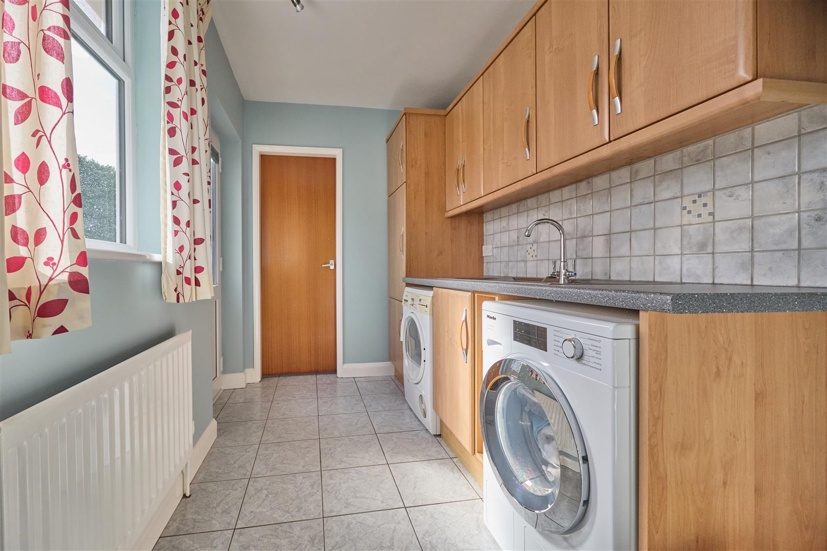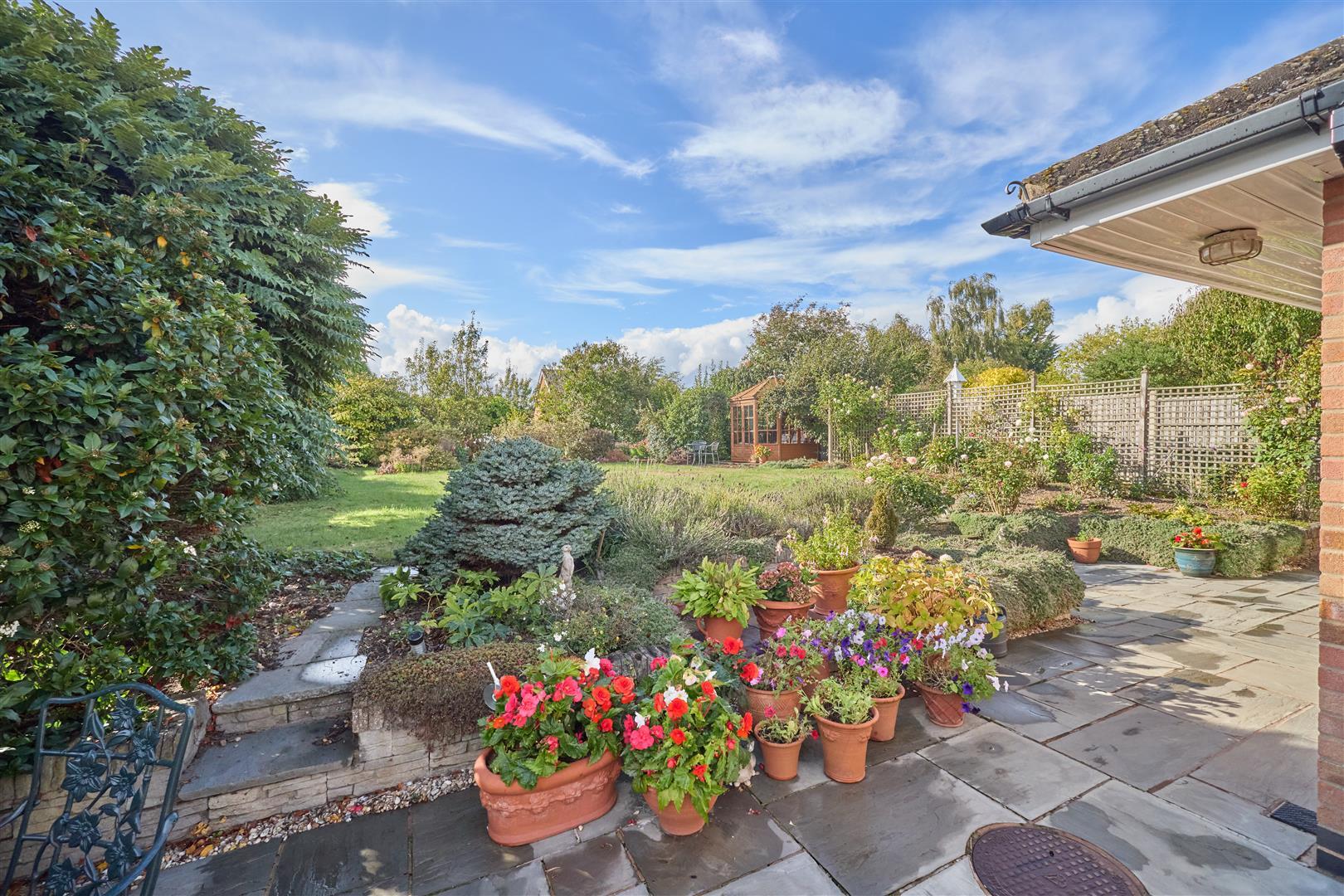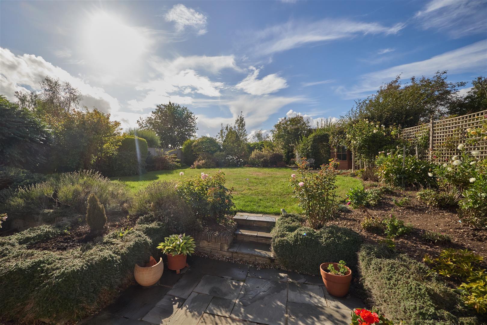 The property is nicely situated set well back from the road on a large plot with front garden which is laid to lawn with well stocked beds and trees, stoned area and wide tarmacadam driveway. The driveway leads to a double garage which measures 4.77m x 5.27m with electric up and over door to front, electric fuse board, power and lighting. The rear garden is accessible via an iron gate to side with block paved pathway. The front has an impressive frontage of approximately 55 feet. The rear garden is well established and well stocked. Adjacent to the rear of the property is a stone patio offering a seating area with raised beds and rockery areas with rose bushes with apple, pears and plum trees. There is a further stone patio with a summer house and towards the top of the garden there is a greenhouse a raised vegetable patch and a further timber shed. There is also an outside tap and outside lighting.