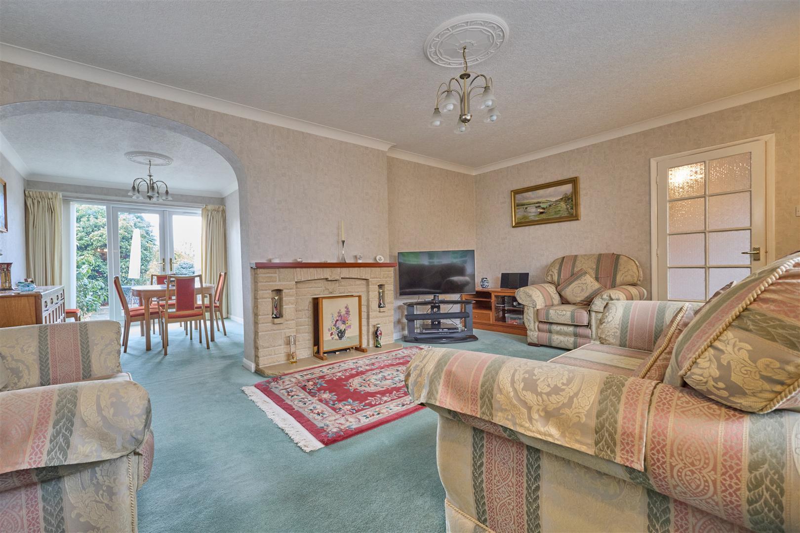 With feature fireplace with a coal effect gas fire with Cotswold Stone surround and stone hearth and wooden mantle, TV aerial point and coving to ceiling, ornamental ceiling rose and wall lights. Archway through to