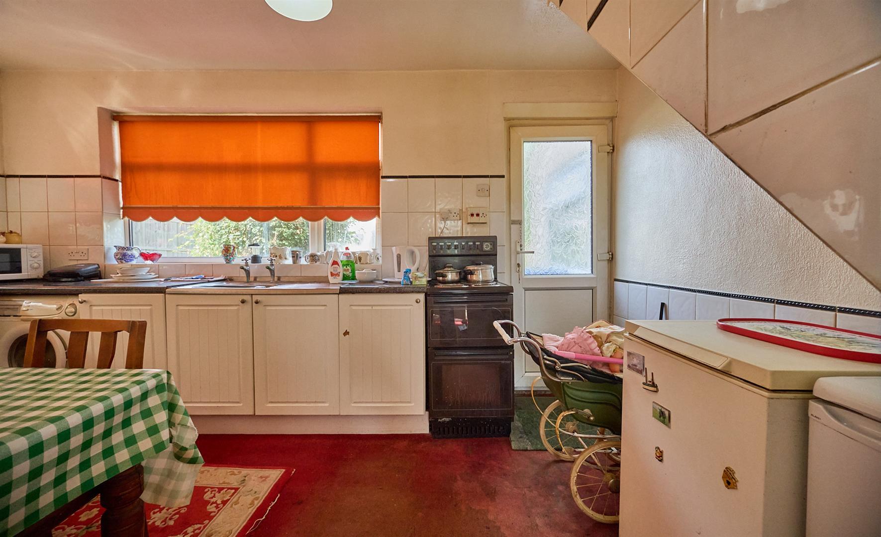 With a range of floor standing kitchen units with roll edge working surfaces above, inset drainer stainless steel sink with mixer taps above. Space for a gas cooker plumbing for a washing machine. Tiled splashbacks. UPVC SUDG door leading to the rear garden.