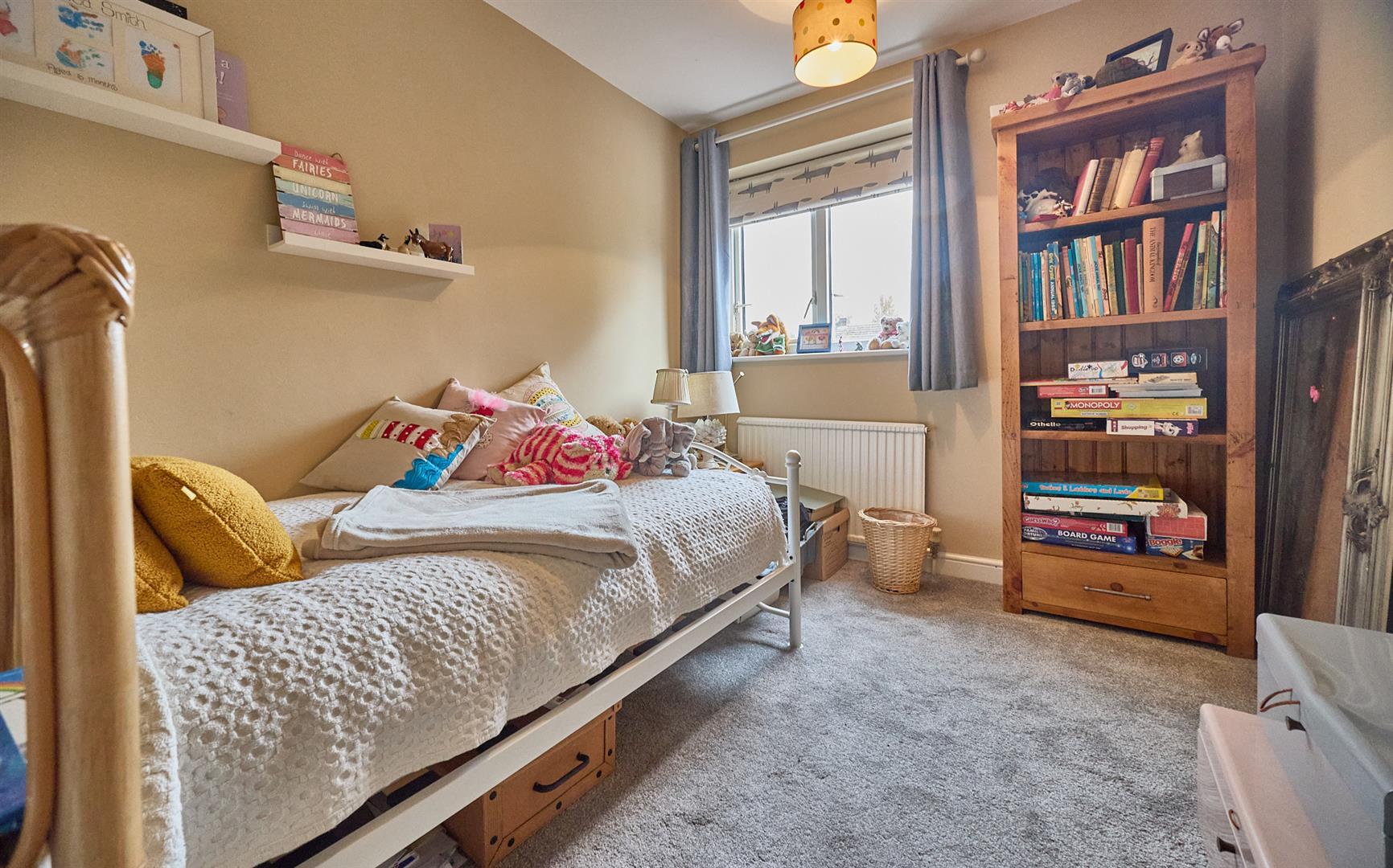 With a built in double wardrobe with white panel doors to front. Further single storage cupboard with mirror glazed door to front, drawers beneath. Further airing cupboard housing the copper cylinder, fitted with immersion heater for supplemented domestic hot water, radiator.