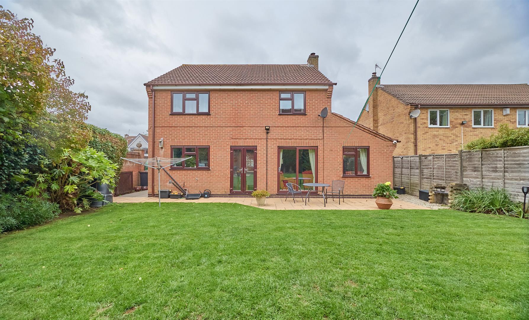 Impressive, modern David Wilson built detached family home on an advantageous walled corner plot. Sought after and convenient cul de sac location within walking distance of a parade of of shops, doctors surgery, local schools, the village centre, restaurants, public houses and easy access to the A5 and M69 motorway. Well presented with a range of good quality fixtures and fittings including white panelled interior doors, spindle balustrades, Amtico wood grain flooring, UPVC soffits and fascias, gas central heating and UPVC SUDG. Spacious accommodation offers canopy porch, entrance hall, separate WC, lounge with feature fireplace, family room/dining room, study, refitted kitchen, dining area and utility room. Four good bedrooms (main with en suite shower room), further family bathroom. Impressive driveway to large garage. Well kept front and rear gardens. Viewing recommended. Carpets, blinds, light fittings and shed included.