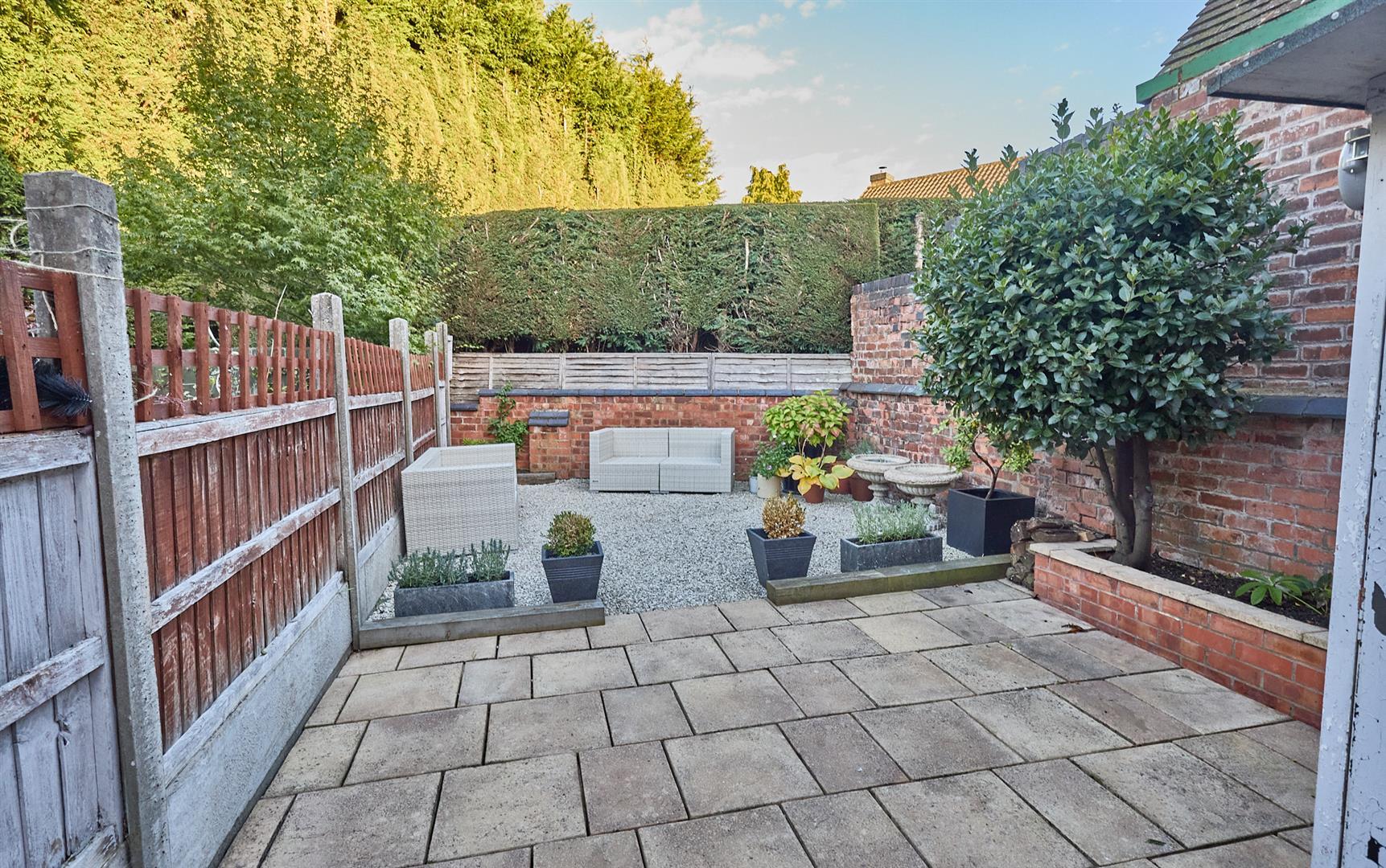 The property is set back from the road screened behind the original blue brick retaining wall with a decorative stoned front forecourt, there is a shared covered side entry leading through double timber gates to the good sized fully fenced and enclosed rear garden which has been hard landscaped, having a deep slabbed rear yard. Attached to the rear of the house is a brick built utility room measuring 1.65m x 1.86m with a range of beech finish fitted kitchen units consisting of a single floor standing cupboard unit, roll edge working surface above. Further wall mounted cupboard units, appliance recess points and plumbing for automatic washing machine. Ceramic tiled flooring, extractor fan. Further brick built store room ideal for dustbins with timber and glazed doors to both front and side beyond which the garden has a full width slabbed patio with raised brick bed. The top of the garden is in decorative stones with surrounding retaining wall and panelled fencing.