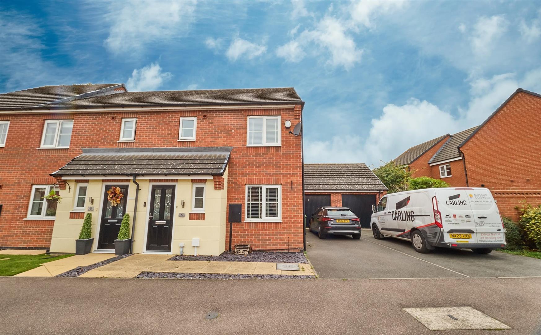 Impressive, extended, 2013 Persimmon Homes built ex show home. Sought after and convenient location within walking distance of the village centre including a range of shops, Junior School, Doctors surgery, recreational facilities, public houses, open countryside and with good access to the M69 motorway Well presented, energy efficient with a range of good quality fixtures and fittings including white panelled interior doors, Karndean wood grain flooring, wired in smoke alarms, gas central heating and UPVC SUDG, Offers entrance hall, separate WC, lounge with feature fireplace & open plan living dining kitchen. 3 bedrooms (main with en suite shower room) and family bathroom. Driveway to garage. Well kept front and good sized sunny rear garden. Viewing highly recommended. Carpets included