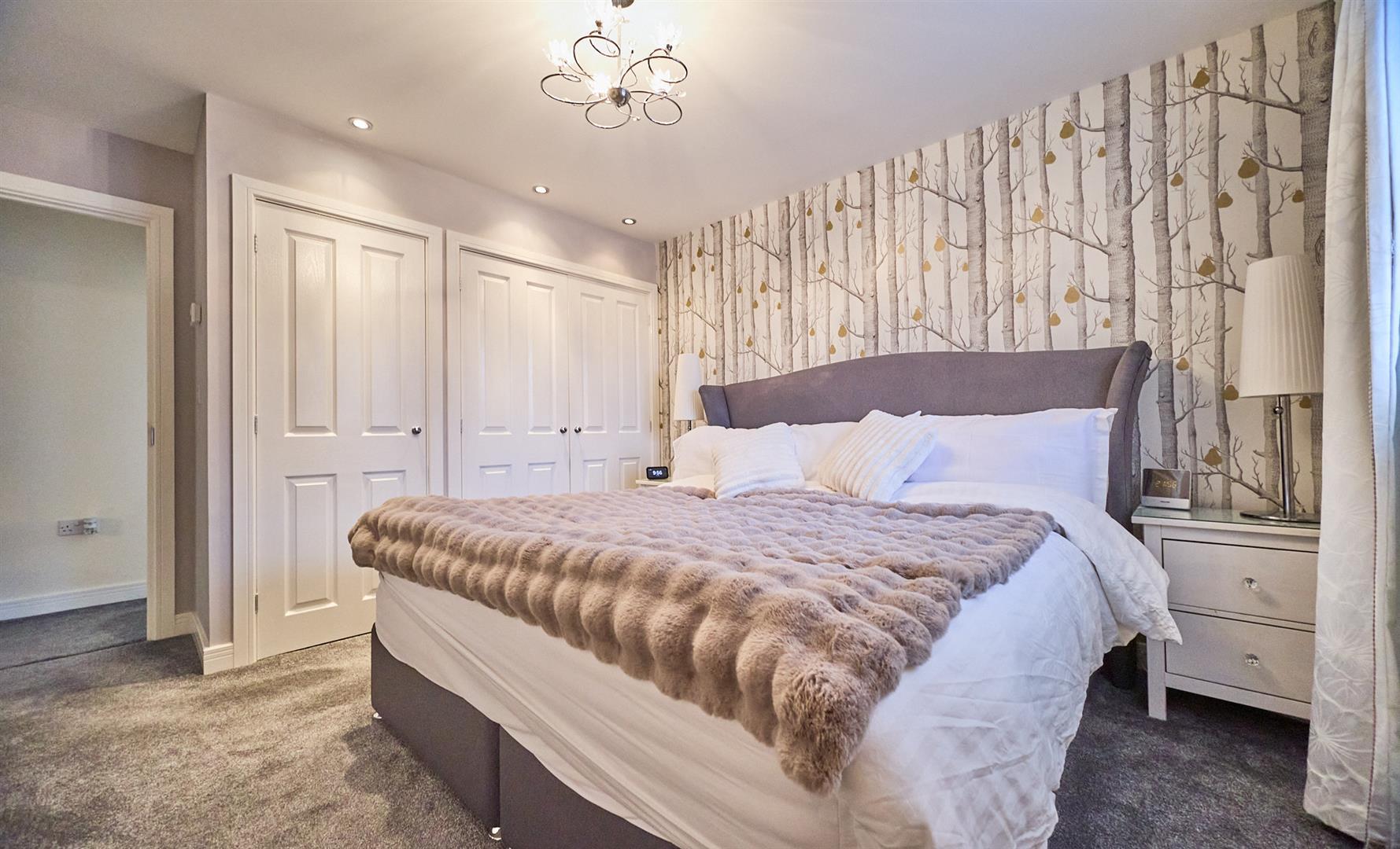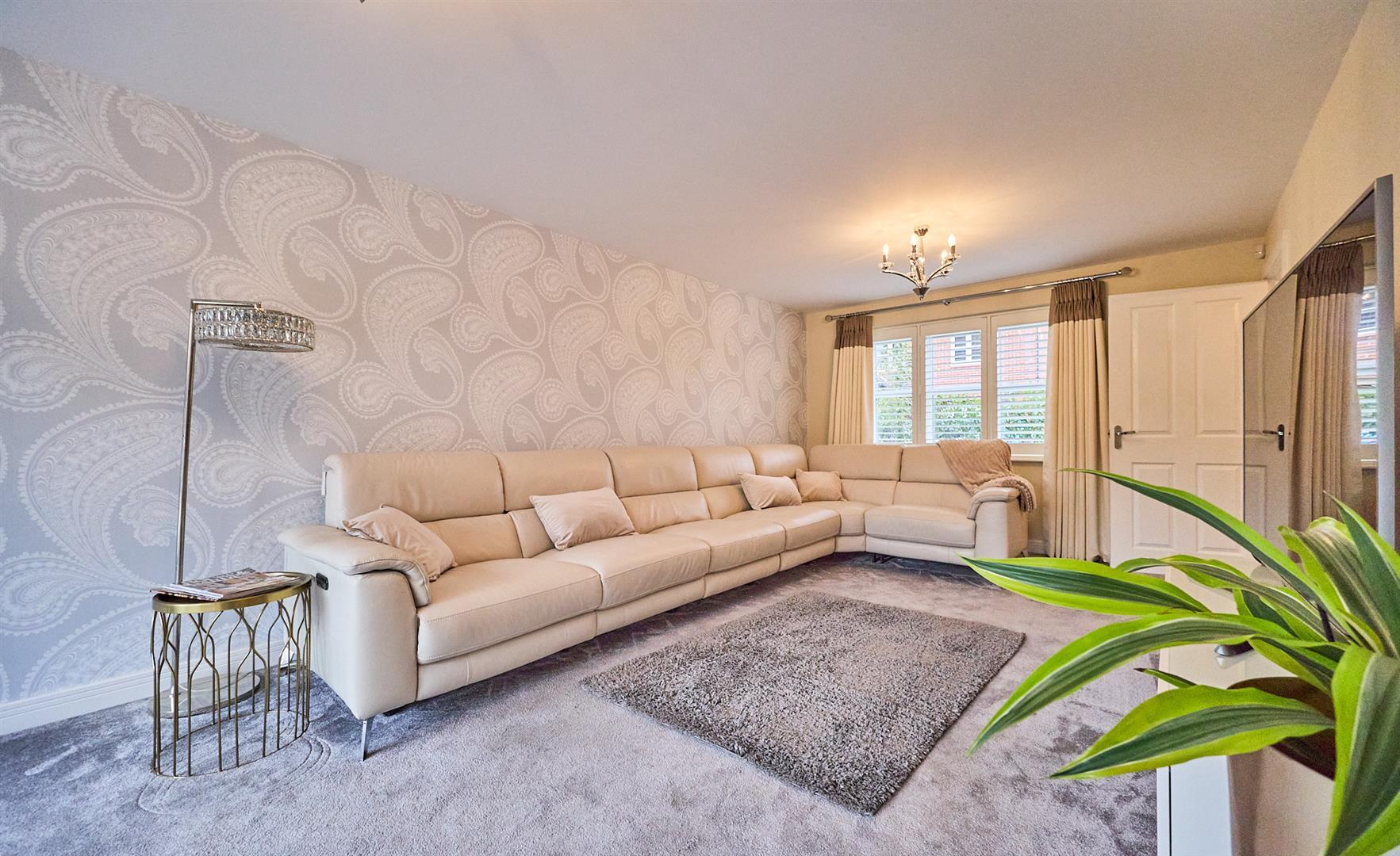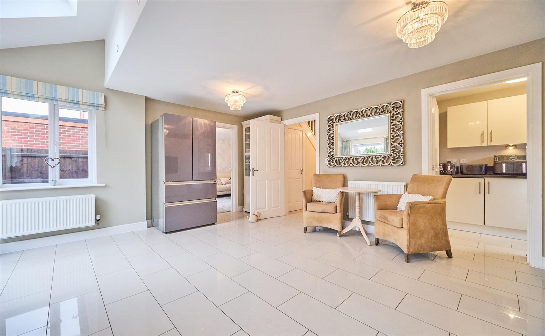 Stunning, spacious, modern four bedroom detached home. Sought after and popular and convenient location within walking distance of the village centre including shops, schools, doctors, dentists, parks, open countryside, bus service, recreational facilities, takeaways, public houses and with good access to major road links. The property is immaculately presented, benefitting from stylish interior doors, fitted wardrobes, window shutters, bi-folding doors, gas central heating and UPVC SUDG (sealed unit double glazing). Accommodation offers entrance hallway, lounge , study/playroom, separate WC & an exceptional open plan kitchen/dining space with integrated appliances including fridge/freezer, dishwasher, oven & hob & utility room. Four bedrooms (one with en suite shower room) and family bathroom. Enclosed rear garden with patios & shed. Driveway to garage front offering parking.