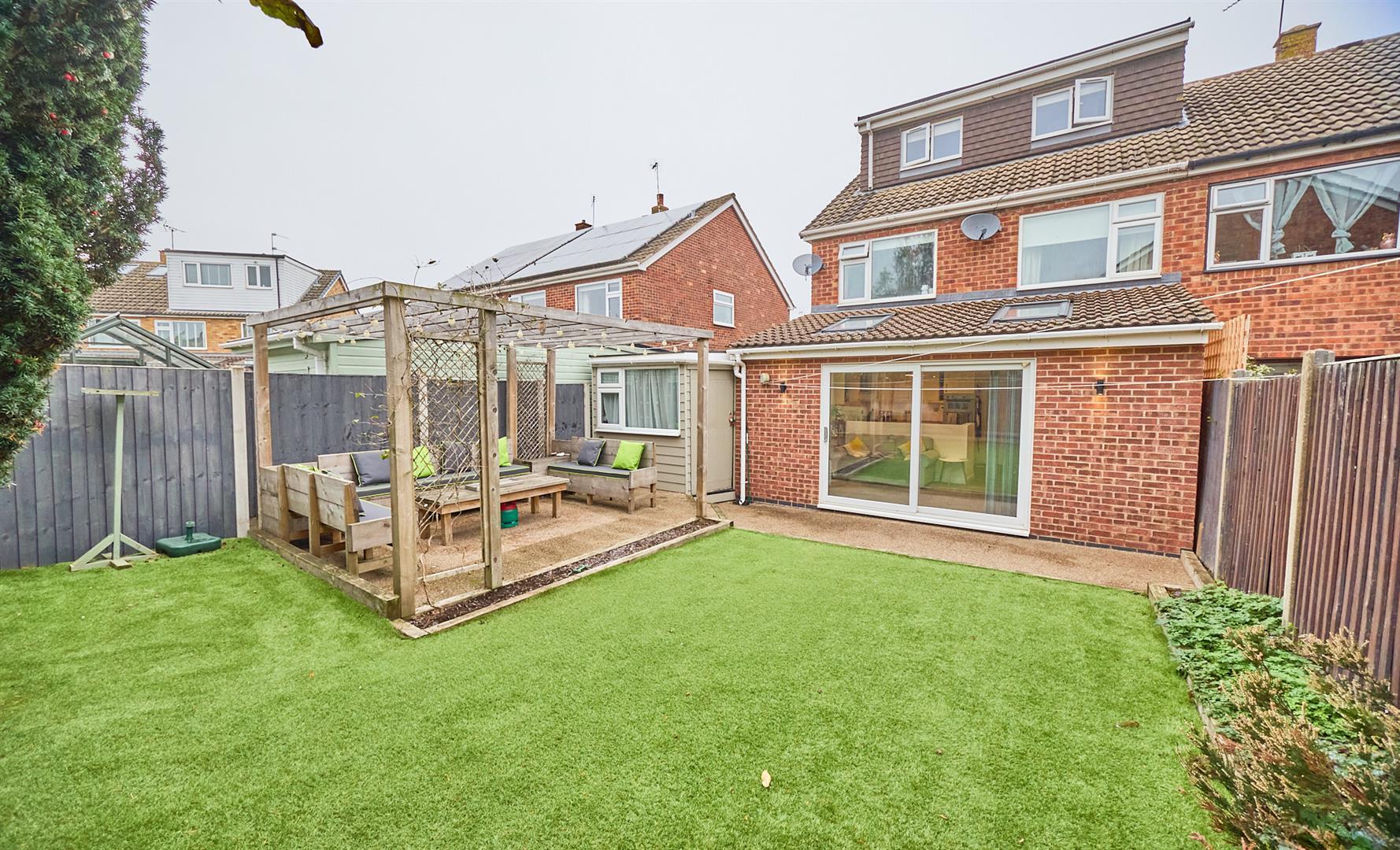 Extended, vastly improved and refurbished modern four bedroom, three storey semi detached family home. Sought after and convenient cul de sac location within walking distance of a parade of shops, doctors surgery, schools, parks, bus service, the village centre, public houses, restaurants and easy access to the A5 and M69 motorway. Immaculately presented including white panelled interior doors, wooden flooring, refitted kitchen and bathroom, spotlights, wired in smoke alarms, gas central heating, UPVC SUDG and UPVC soffits and fascias. Spacious accommodation offers entrance hall, lounge and extended open plan living/dining/kitchen. Four good bedrooms (main with en suite shower room) and family bathroom. Wide driveway offering ample car parking. Hard landscaped sunny rear gardens with large shed. Viewing highly recommended. Carpets and blinds included.
