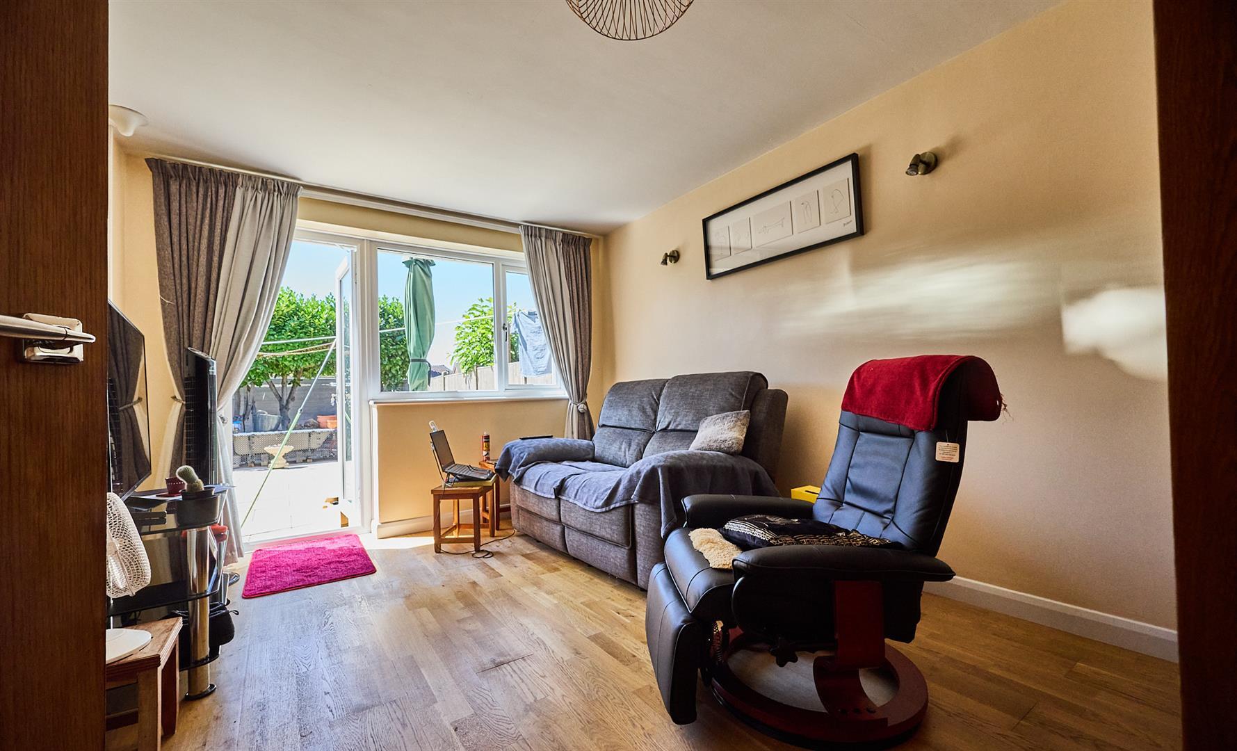 With wood effect laminate flooring, single panelled radiator, TV aerial point. UPVC SUDG door to rear garden. Telephone booster point.