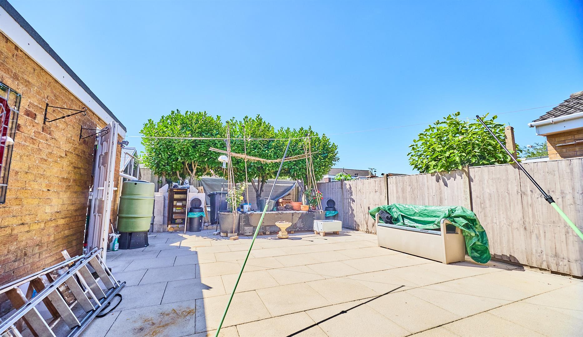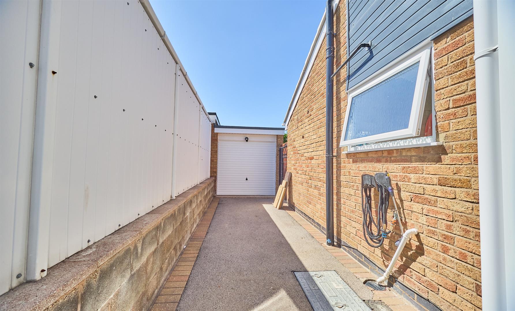 The property is set well back from the road with a tarmacadam and concrete slabbed driveway, single garage with white up and over door with lighting and electric. Pedestrian gate to rear garden which is fully hard landscaped with a limestone patio and an area of decorative stone, with a row of Laurels for privacy. Pedestrian gate to garage, greenhouse, the garden is fenced and enclosed. The property has solar panels to reduce electric bills.