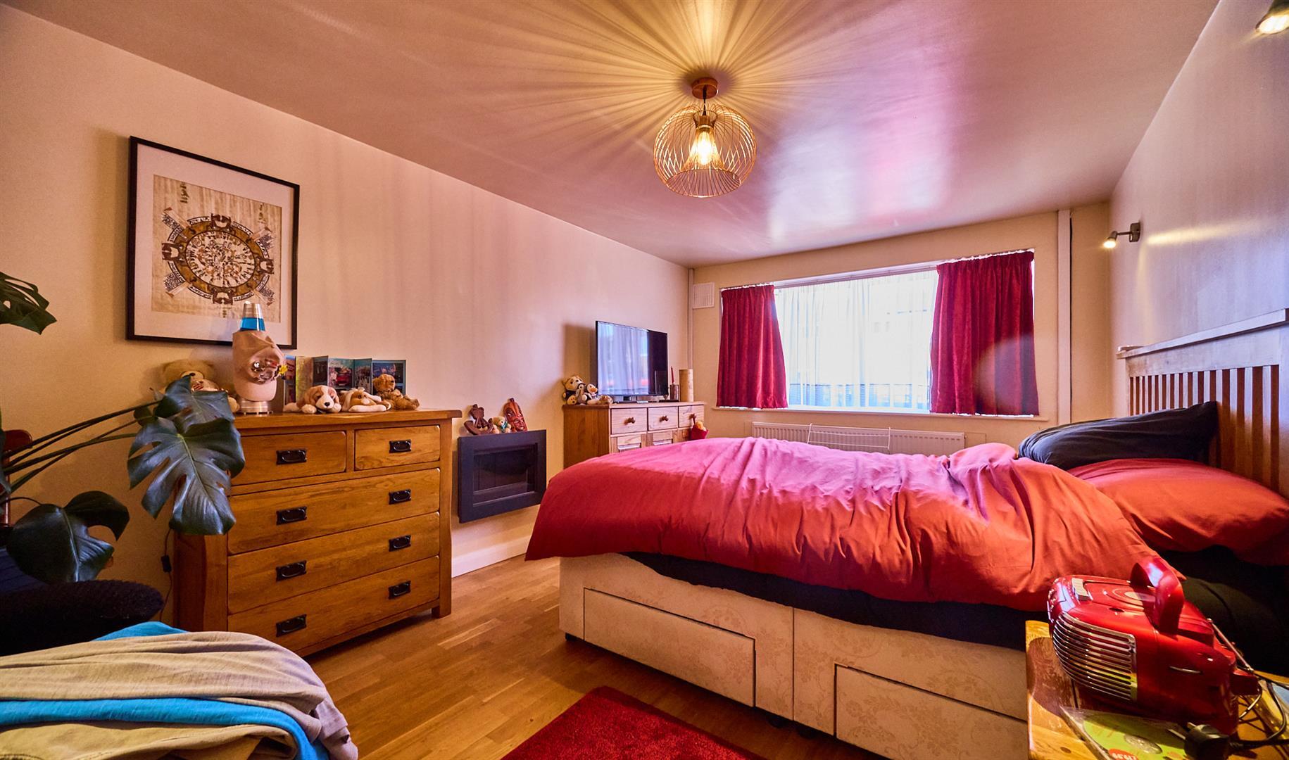 With wood effect laminate flooring, double panelled radiator. Bay window to front. Door to