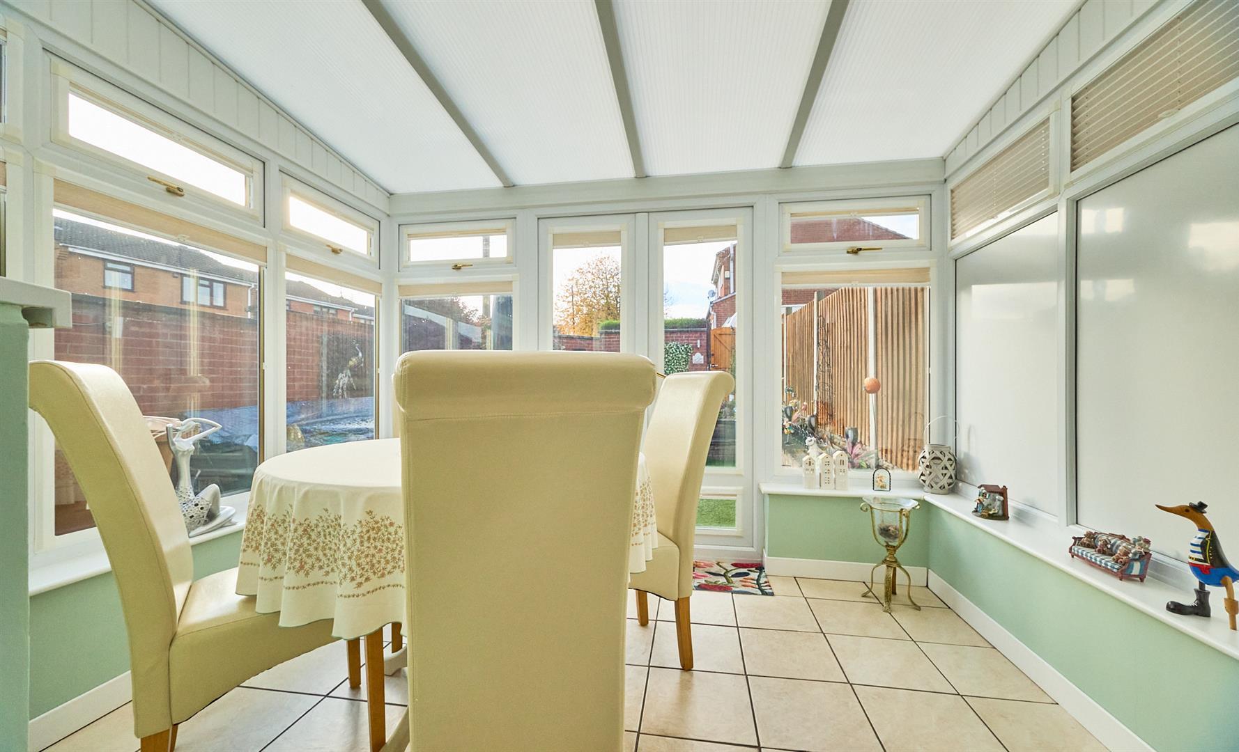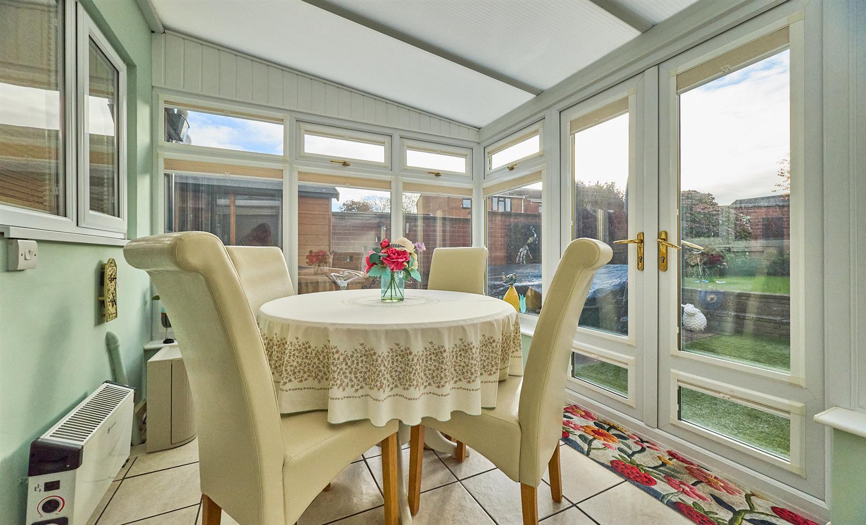 With ceramic tile flooring, wall mounted electric convector heater , double power point. The conservatory blinds are included. UPVC SUDG French doors to rear garden.
