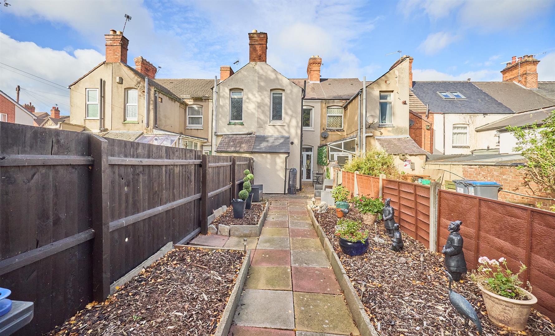 The property is set back from the road, a shared pedestrian access leads through timber gate leading to a fully fenced enclosed rear garden which has a slabbed rear yard. Attached to the rear of the house is a brick store with outside tap beyond which is a fully fenced rear garden which has a sunny aspect, principally hard landscaped with central paved area and patio with surrounding raised beds. To the top of the garden is a shed.