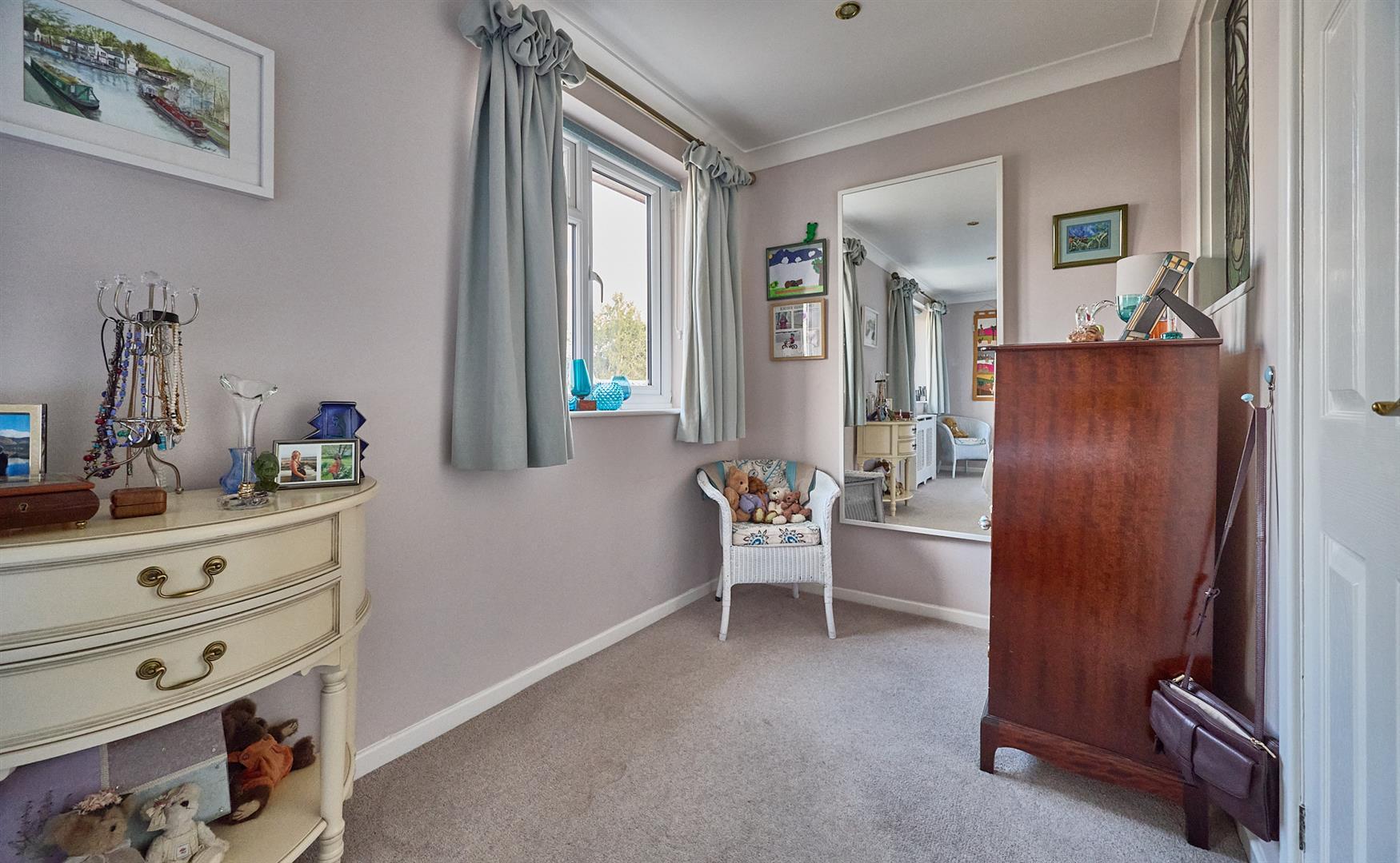 With a range of fitted units consisting shelves and drawers, double panelled radiator and a window seat with cushion, fitted blinds. Door to