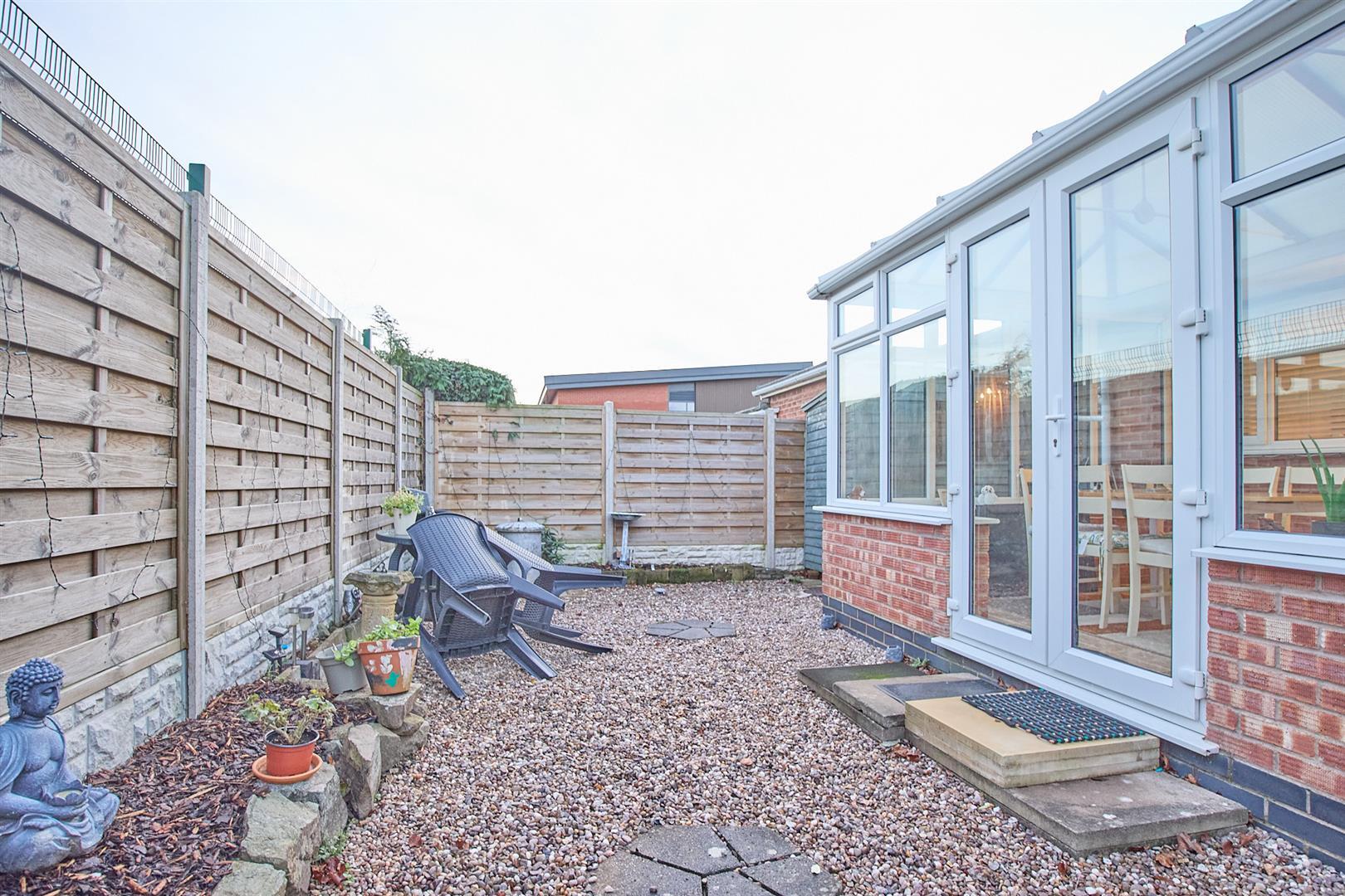 The property is set back from the road with a concrete slab path to the front door, surrounded by decorative stone. Tarmacadam driveway leading to a carport with outside lighting. To the rear of the property is a decorative stone laid garden with a concrete slabbed patio. The garden is fenced and enclosed with a raised bark bed timber shed.