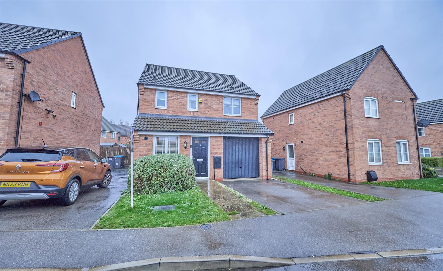 NO CHAIN. Stylish 2014 Persimon homes built detached family home. Sought after and convenient location within walking distance of the town centre, the crescent, schools, doctors dentists, train and bus stations and good access to the A5 and M69 motorway. Immaculately presented, energy efficient with a range of good quality fixtures and fittings including white panelled interior doors, spotlights, wired in smoke alarms, gas central heating, UPVC SUDG and UPVC soffits and fascias. Spacious accommodation offers, entrance hall, separate WC, lounge diner & fitted kitchen . 3 bedrooms (main with en suite shower room) and family bathroom. Driveway to garage, front and good sized rear garden. Contact agents to view. Carpets and blinds included.