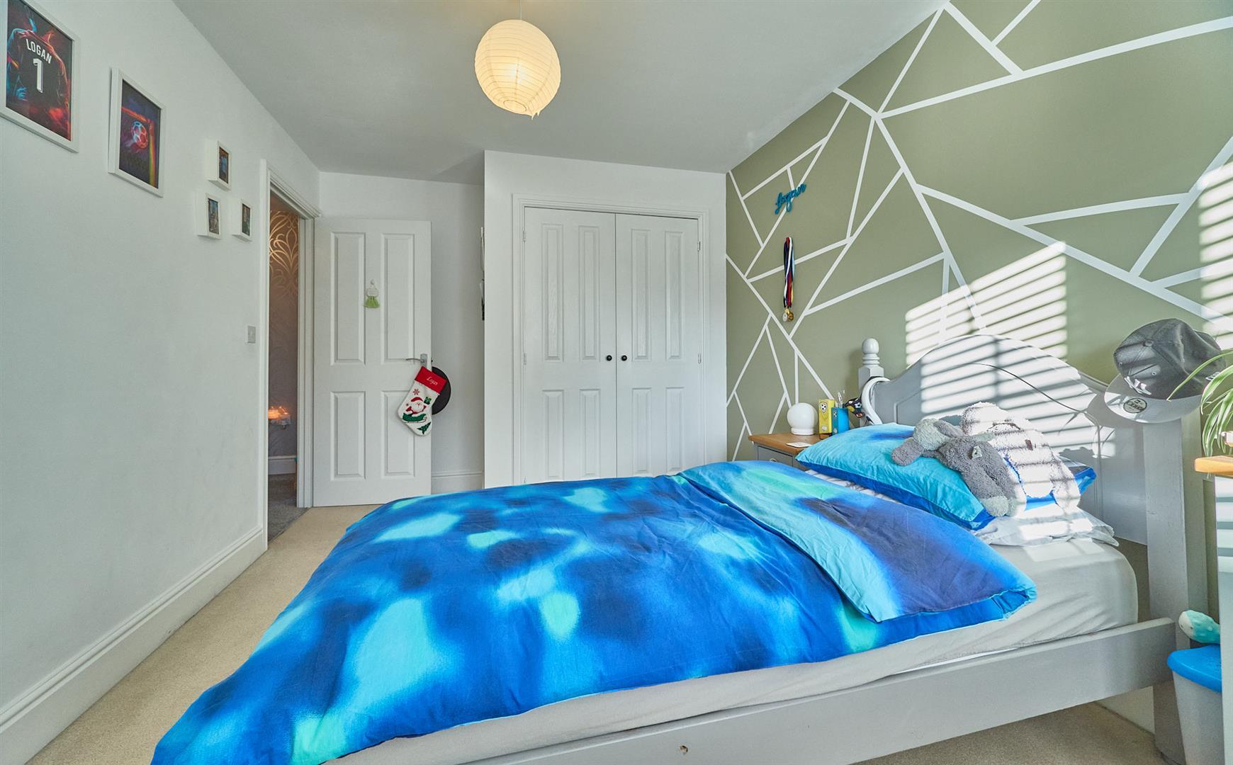 With built in double wardrobe in white, single panel radiator, TV aerial point.