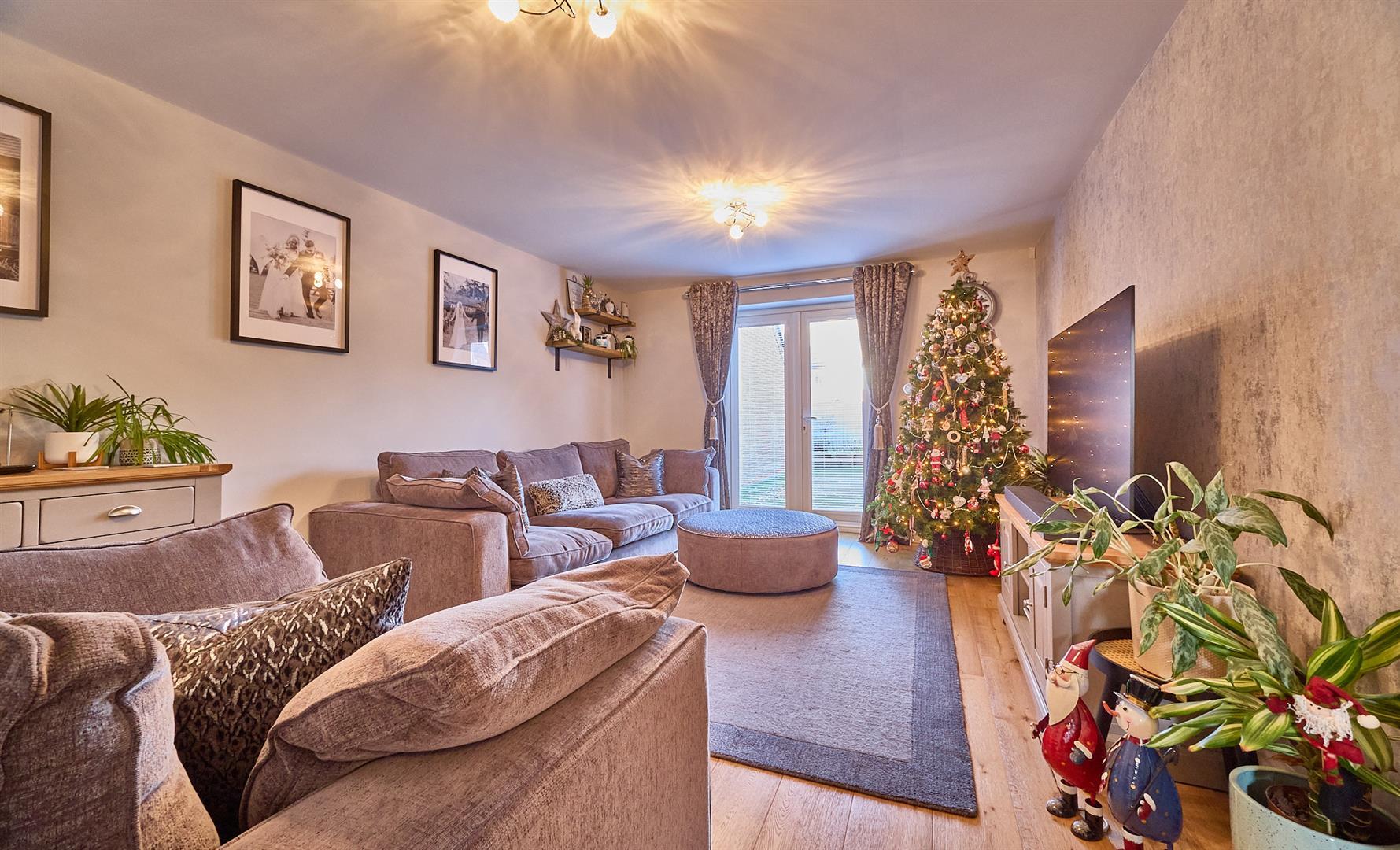 With oak strip flooring, two single panel radiators. Digital audio broadcasting point including Sky. UPVC SUDG french doors to rear garden.