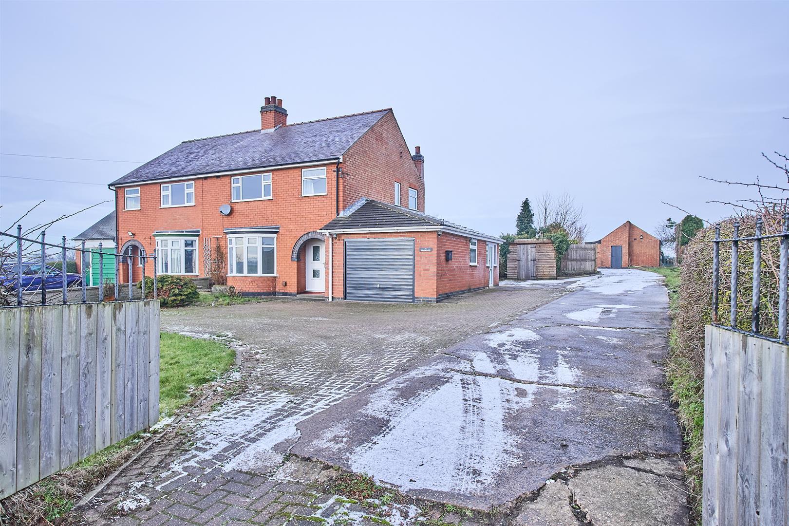 LARGE BRICK BUILT UNIT INCLUDED. Vastly improved and refurbished traditional semi detached family home on a large plot. Good location within walking distance of the village centre, including shops, co-op, primary school. doctor surgery, bus service, public houses, takeaways and good access to major road links. Immaculately presented including white panelled interior door refitted kitchen, UPVC SUDG. oil powered heating. Spacious accommodation offers entrance hallway, utility room, kitchen, dining room, lounge & one bedroom downstairs. Two bedrooms, study & bathroom with shower upstairs. Wide driveway to front and large rear garden with car access to brick unit.