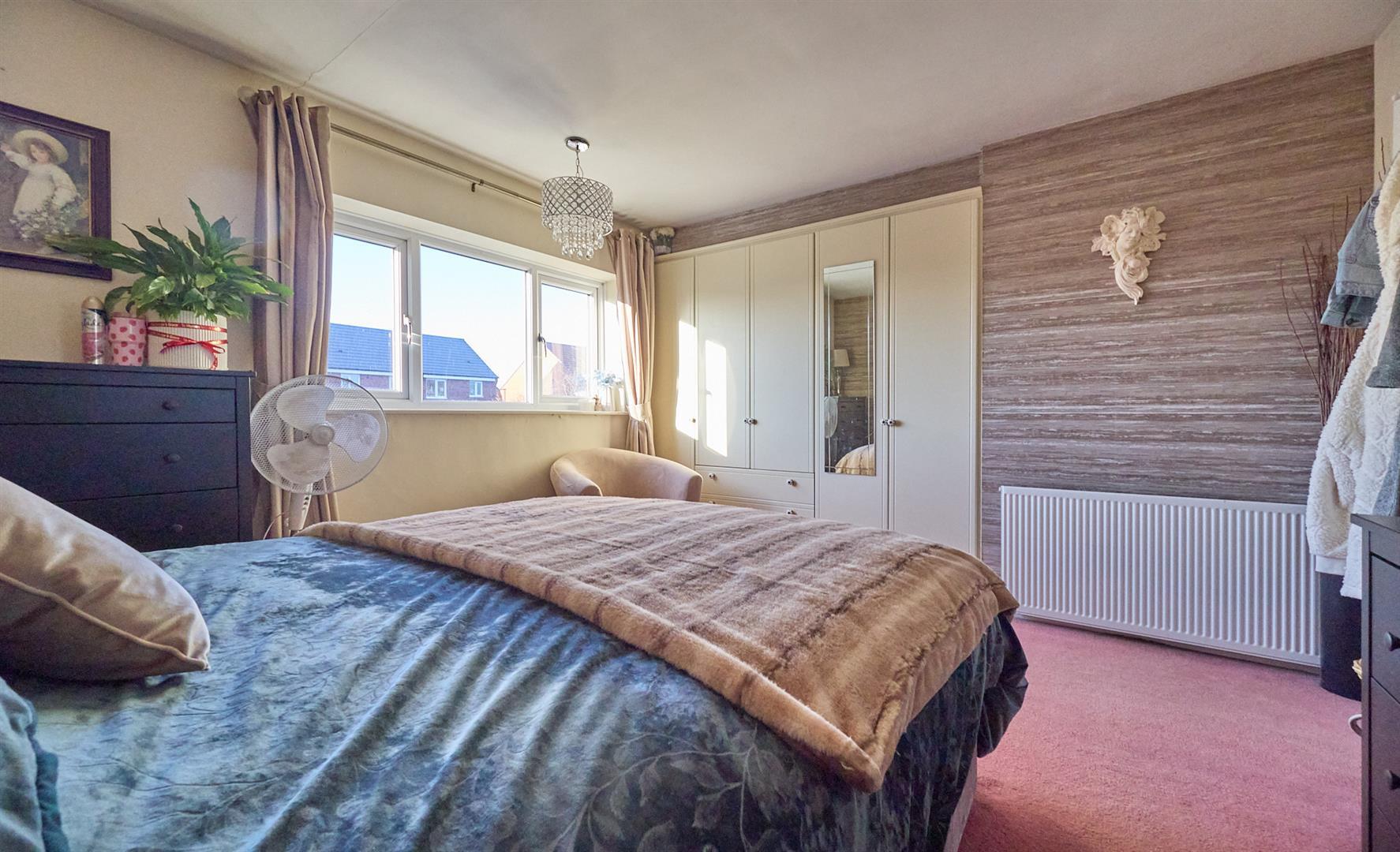 With two fitted wardrobe units and a set of matching cupboards above the bed. Radiator. White panelled door to a storage cupboard which houses the Worcester gas combination boiler for central heating and domestic hot water.