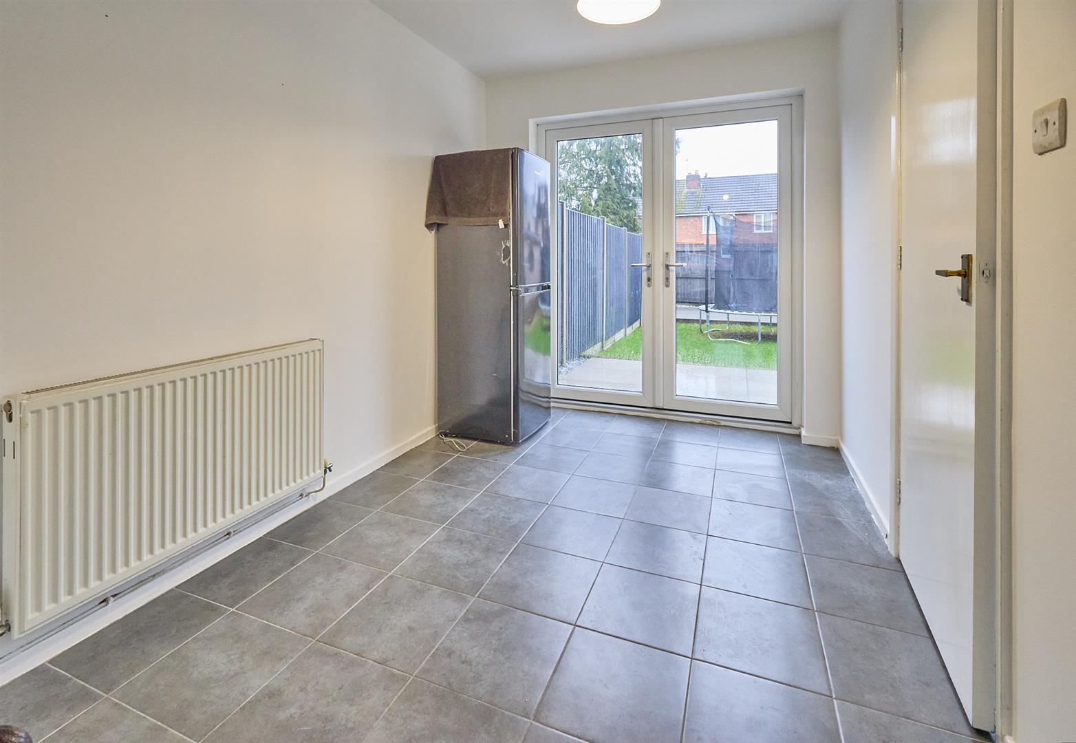 With grey ceramic tiled flooring, radiator, UPVC SUDG French doors leading to the rear garden. Door to