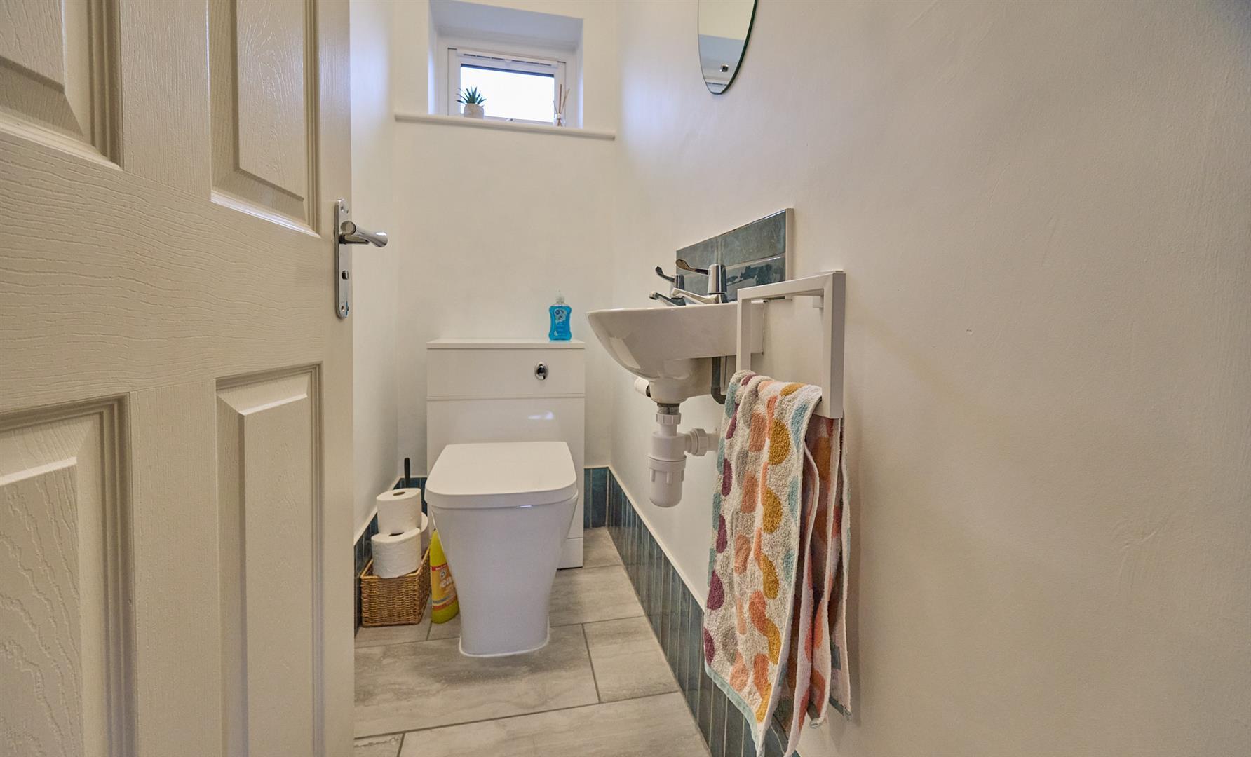 With laminate wood strip flooring, single panel radiator, wired in smoke alarm, hive thermostat for central heating system, wall light, coving to ceiling. Stairway to first floor with white spindle balustrades, attractive white six panel interior doors to