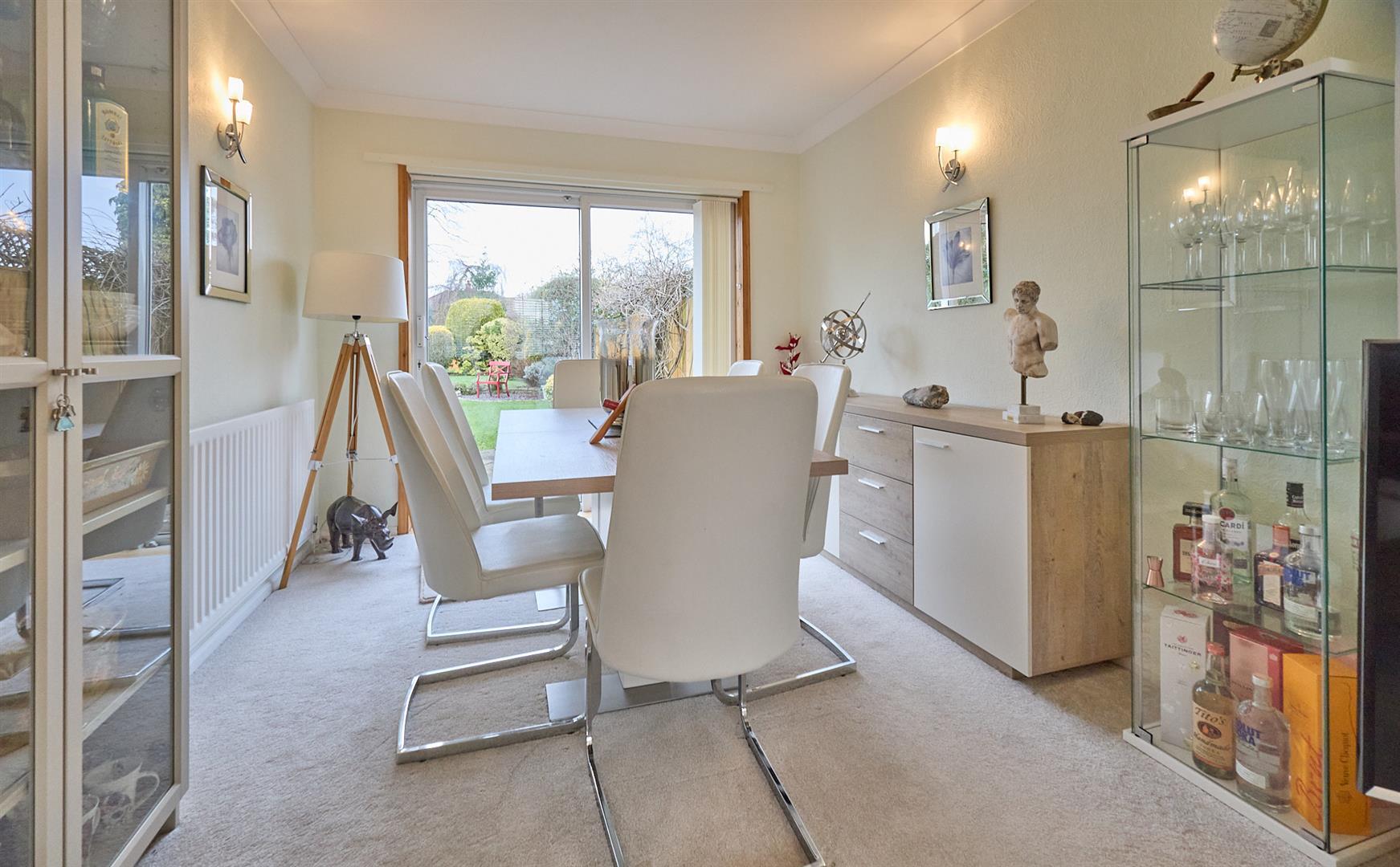 With the lounge area to front with feature marble fireplace incorporating living flame coal effect gas fire, radiator, TV aerial point, coving to ceiling, feature central archway to rear dining area with radiator, coving to ceiling, glass fronted display cabinet, two matching wall lights. UPVC SUDG french doors leading to the rear garden.