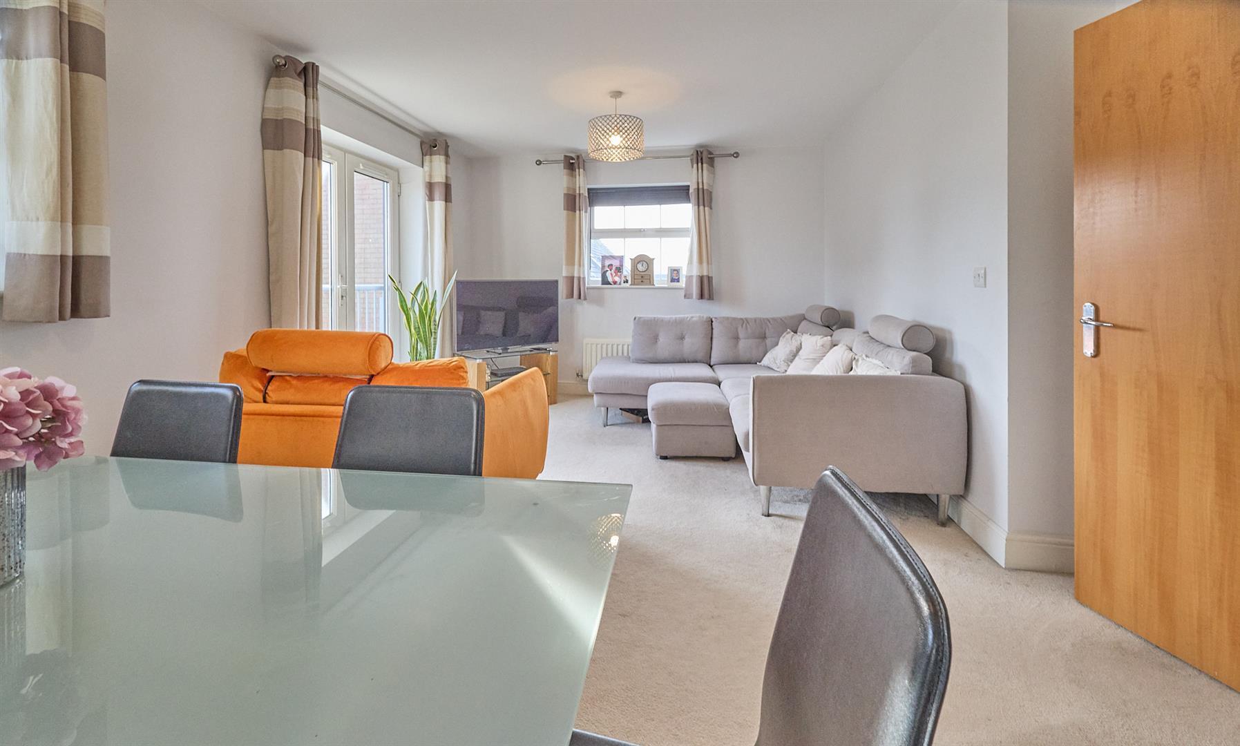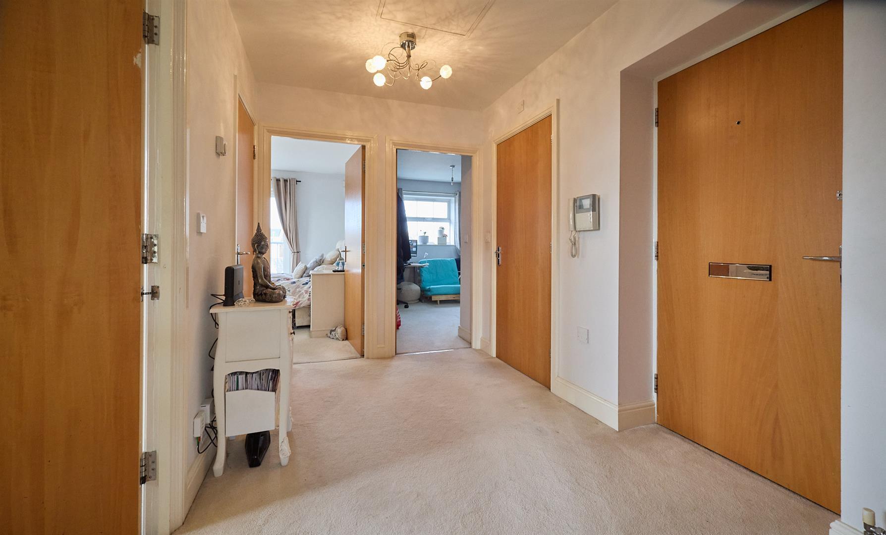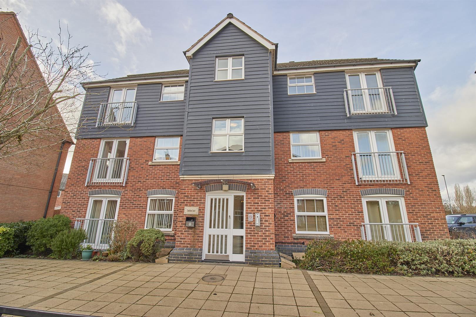 Second floor modern apartment in a sought after an convenient development with views towards Ashby Canal. generously proportioned 2004 Crest Nicholson built second floor apartment overlooking Ashby Canal. Sought after and convenient cul de sac location within walking distance of local amenities and with good access to major road links including the A5, M69 and M1 motorways. The spacious accommodation offers entrance hallway, lounge dining room and fitted kitchen with built in appliances. Two good sized bedrooms (main with fitted wardrobes, Juliette balcony and ensuite shower room) and family bathroom. Storage cupboard and loft access. Curtains and blinds included. One allocated car parking space and visitor spaces. Bin stores.