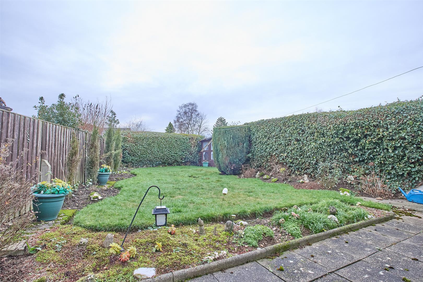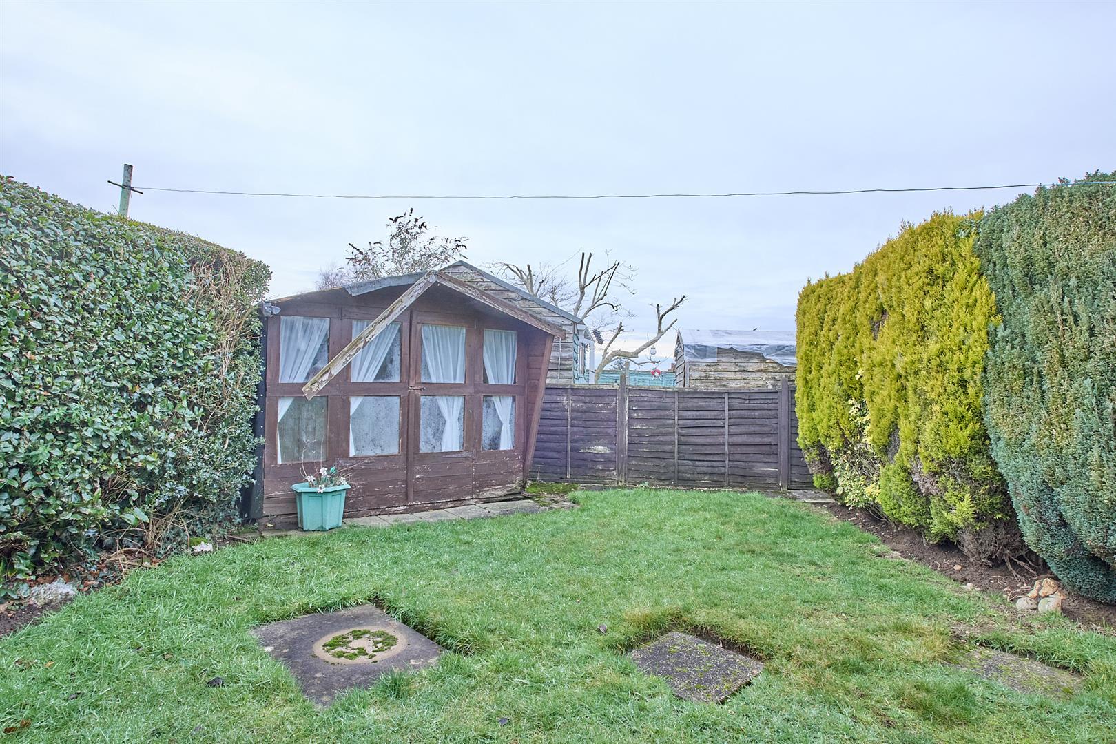 The property to the front is a concrete slabbed driveway for multiple cars leading to a pair of wrought iron gates leading to a garage with double timber doors. The front garden is predominately laid to lawn with a mature bed surrounding. The garden to rear has a concrete slab patio adjacent to the rear of the house. The garden is enclosed with hedging and fencing, predominately laid to lawn with mature shrubs and Wendy house.