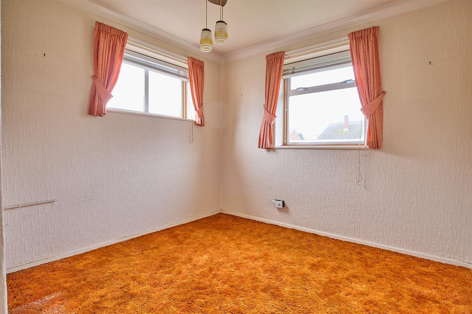With single panel radiator, built in wardrobes with shelving and hanging rail, matching cupboards and dressing table.