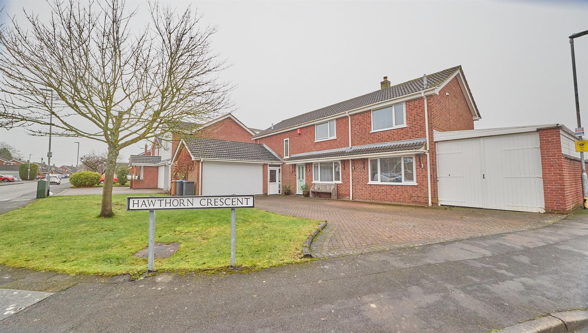 Impressive detached family home on a large corner plot. Highly sought after and convenient location within walking distance of the village centre including shops, schools, doctors, dentists, public houses, restaurants, and easy access to the A5 and M69 motorway. Well presented benefiting from Karndean flooring, wood panelled interior doors, fitted wardrobes, integrated appliances, refitted kitchen, solar panels, UPVC SUDG and gas central heating. Spacious accommodation offers entrance hallway, separate WC, kitchen diner, utility room, lounge, snug and study. Five good sized bedroom (main with en suite bathroom and three with fitted wardrobes) and family bathroom. Large front garden and driveway offering ample car parking. Double and single garages and a good sized enclosed rear garden. Blinds, light fittings and carpets included.