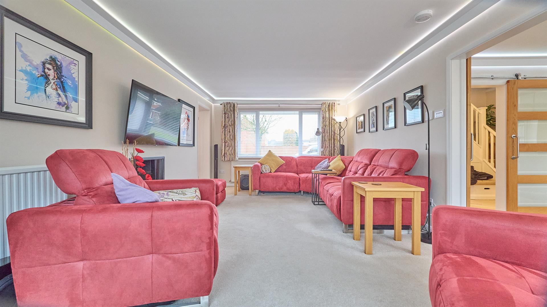 With Karndean flooring, stairway to the first floor, vertical radiator, smoke alarm. Under stairs storage cupboard and under stairs shoe storage drawers. Wood panelled door to