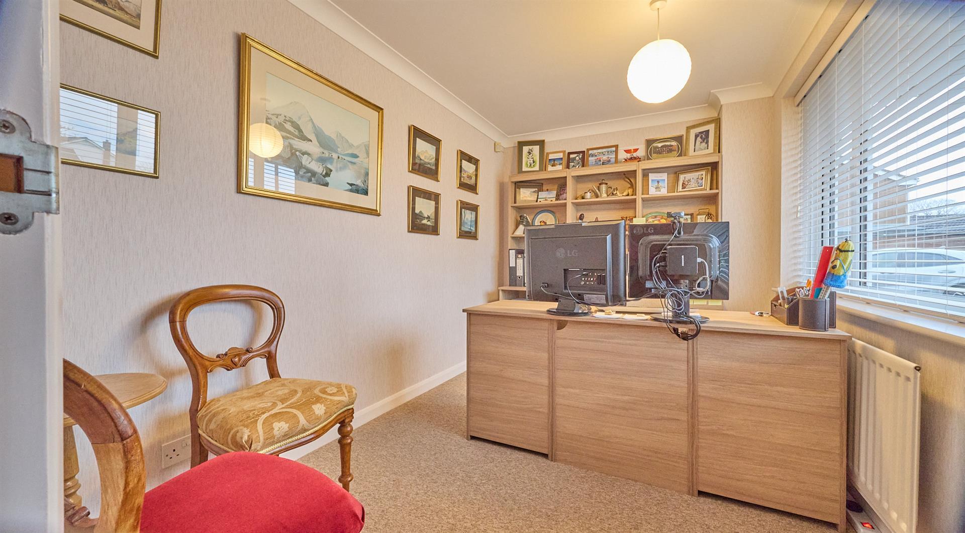 With radiator, smoke alarm and loft access which is boarded. Wooden interior door to