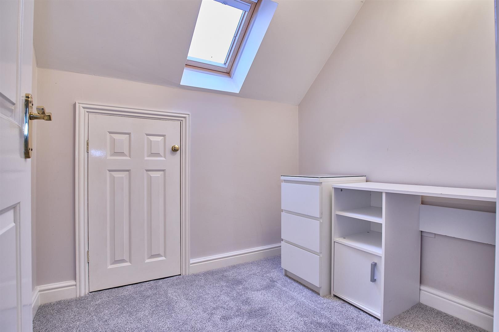 With double panelled radiator, TV aerial point, Velux window. Built in Hammonds wardrobes with shelving and hanging rail. Door to
