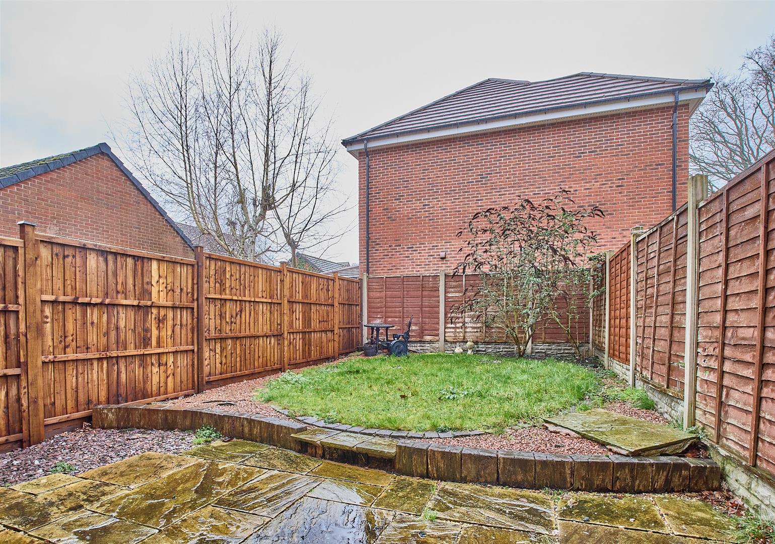 The property has a tarmacadam driveway leading to a single garage with up and over door, a concrete slabbed path leading to the front door surrounded with decorative stone and mature shrubs and outside lighting. Outside the property to rear is a limestone patio adjacent to the rear of the house with a sleeper retaining wall. The garden is predominantly laid to lawn enclosed with fencing with decorative stone beds, outside tap and lighting.