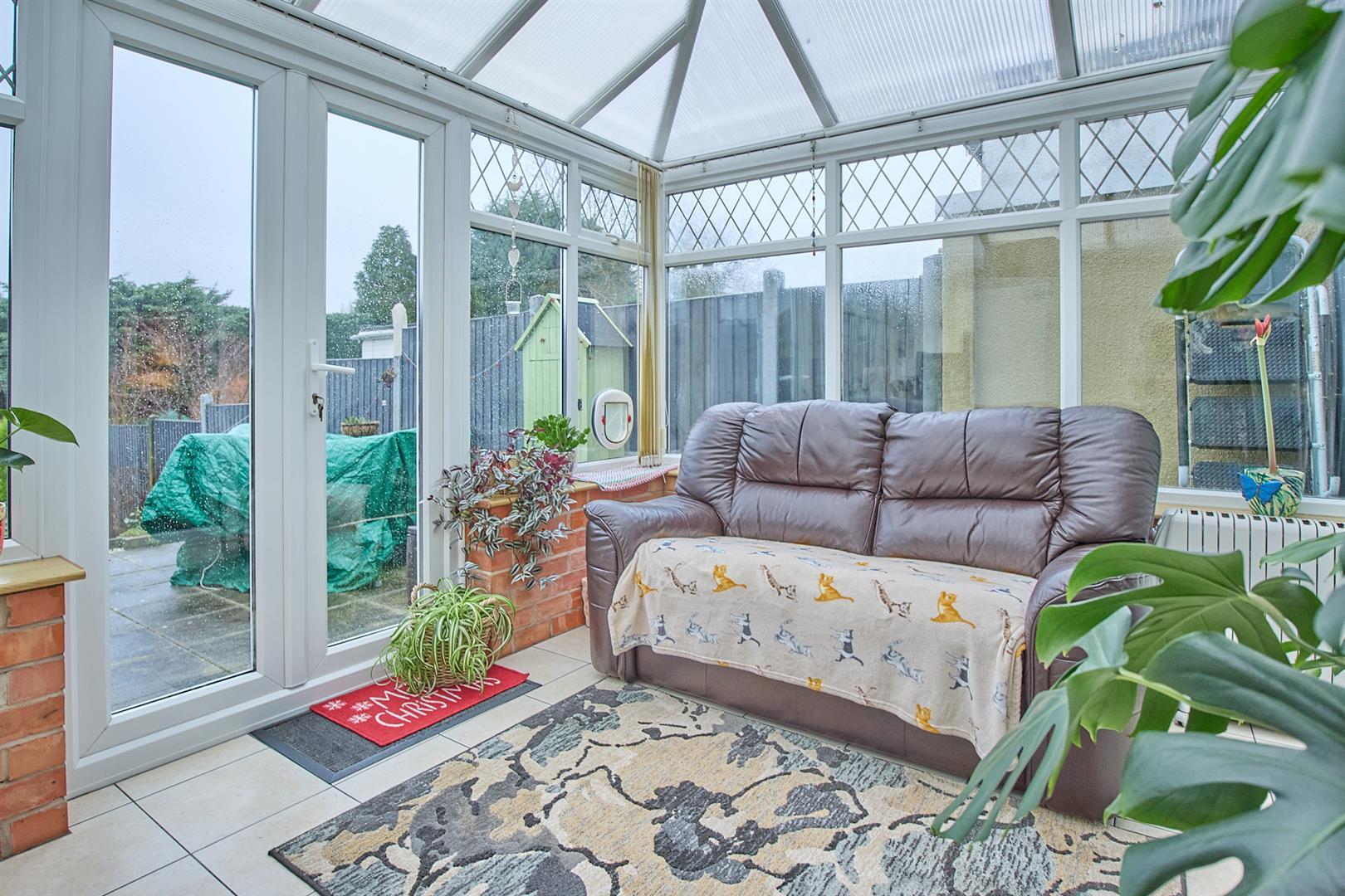 With a further feature fireplace with tiled backing and wooden mantle surrounding, radiator, coving to ceiling and UPVC SUDG French doors to the conservatory.
