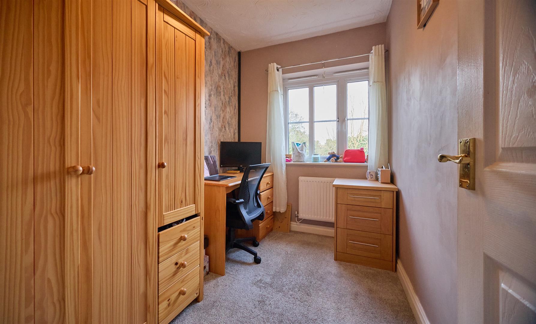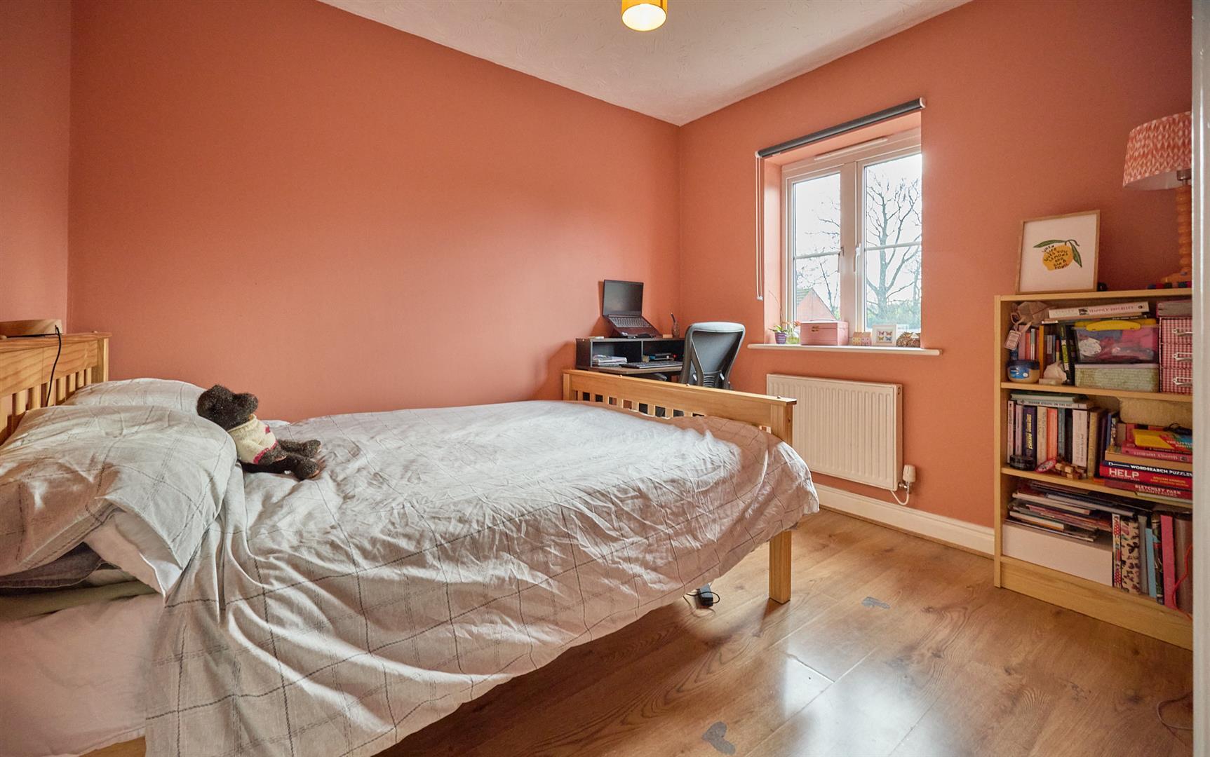 With a range of fitted bedroom furniture in beech consisting one double and one single wardrobe unit, oak finished laminate wood strip flooring, radiator.