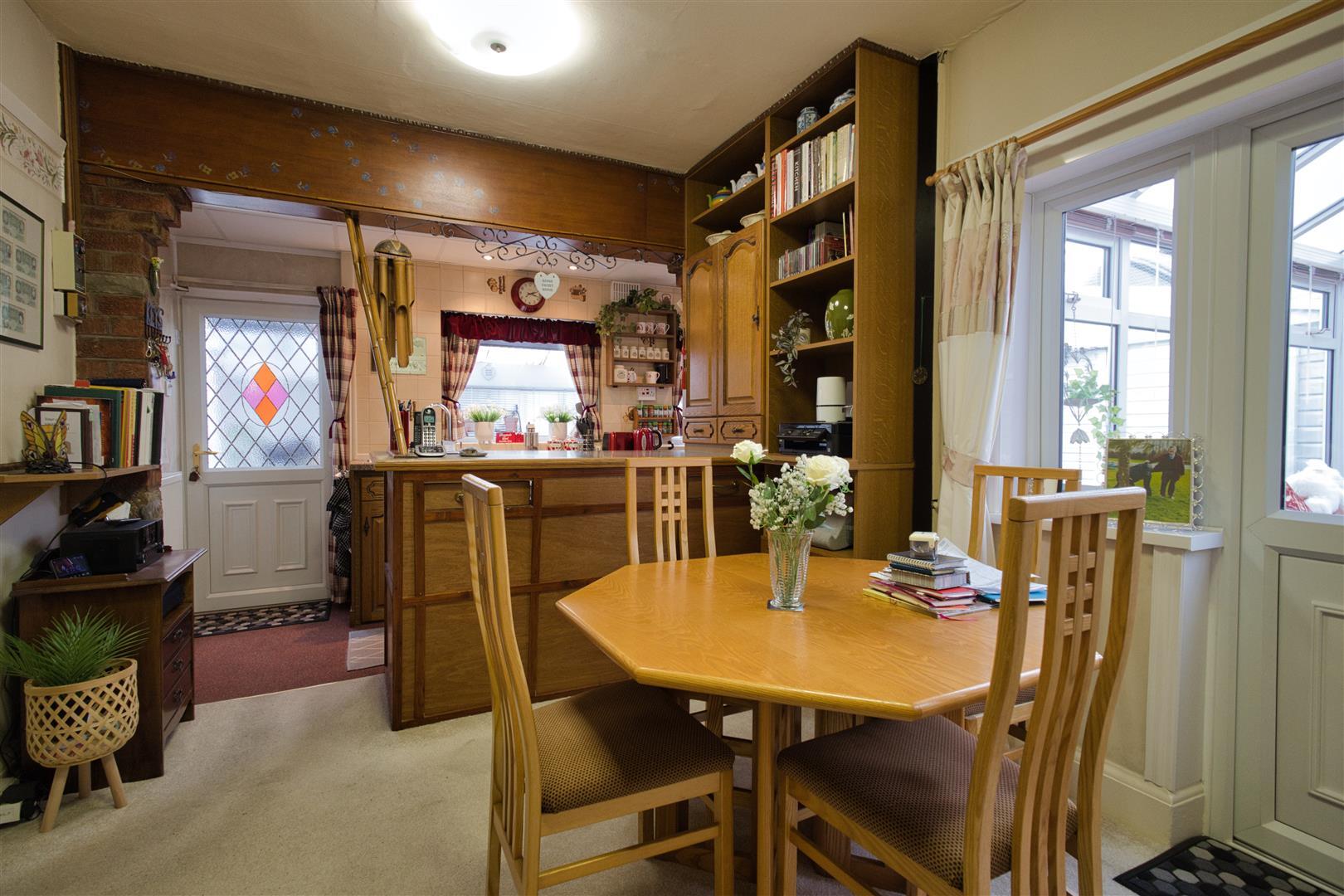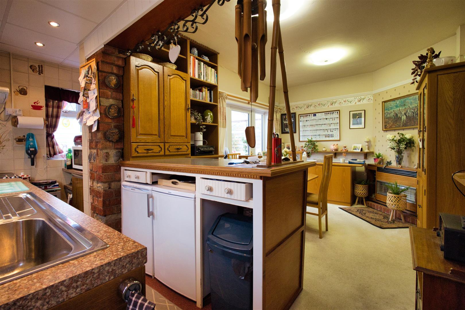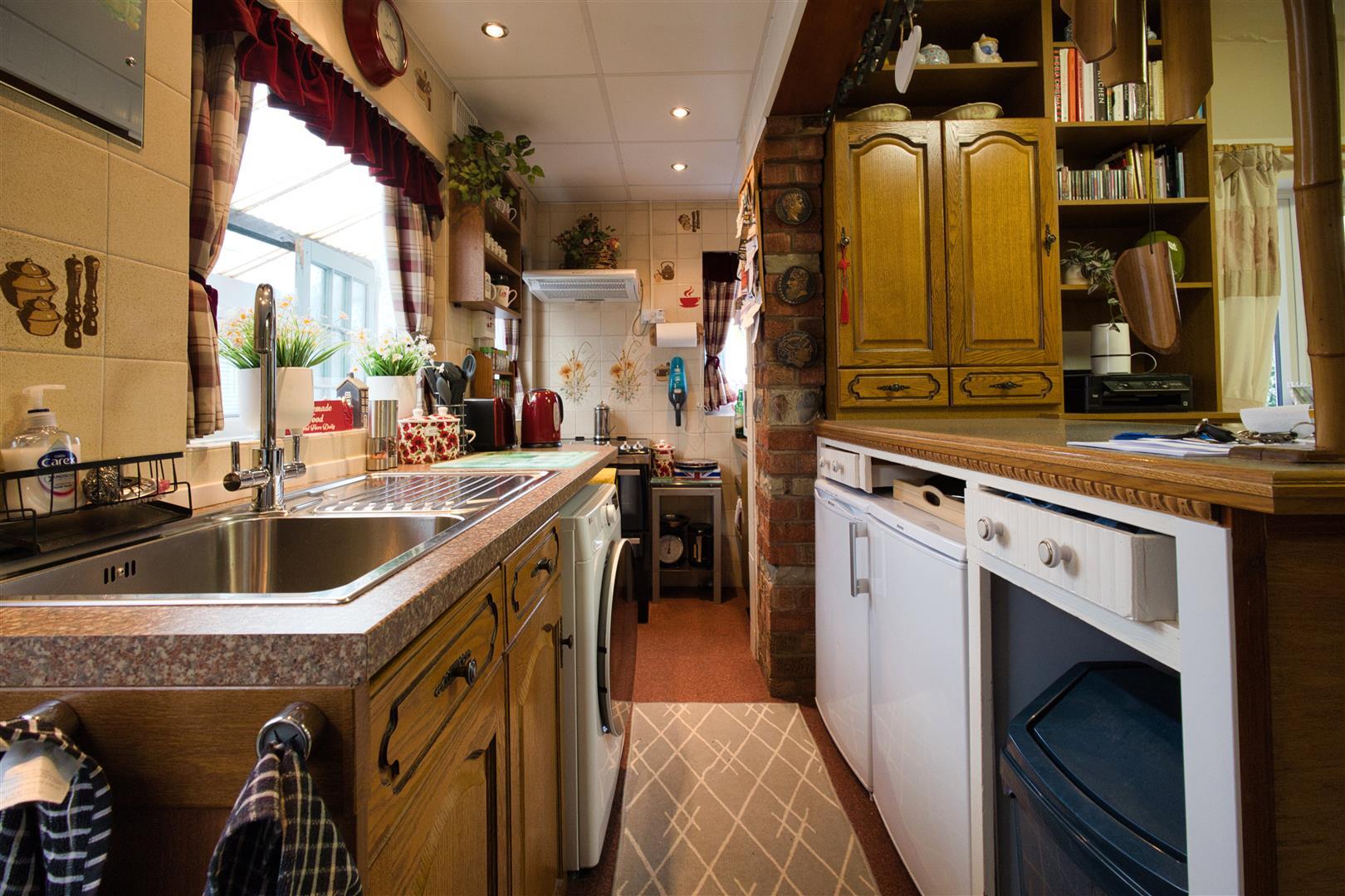 With a range of medium oak fitted kitchen units consisting single drainer stainless steel sink unit, mixer taps above, double base unit beneath, contrasting roll edge working surfaces above, tiled splashbacks. Further wall mounted cupboard units book and display shelving, appliance recess points and plumbing for automatic washing machine. Electric cooker point, cooker with extractor hood above. Wall mounted Valliant gas condensing boiler for central heating and domestic hot water. Further radiator. UPVC SUDG door leading to the side of the house leading to a large side porch/utility area which measures 4.36m x 1.39 with cold water tap, light and power. Wooden glazed doors to both front and rear.
