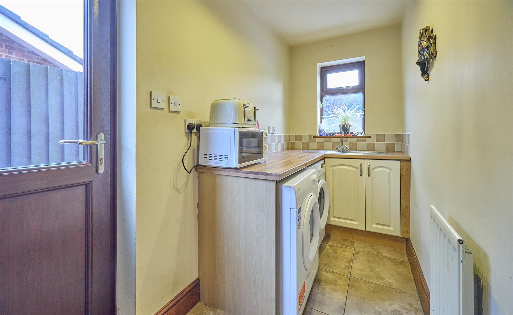With matching units from the kitchen consisting inset single drainer stainless steel sink, mixer tap above, double base unit beneath contrasting walnut finish roll edge working surfaces above, tiled splashbacks, appliance recess points, plumbing for automatic washing machine, ceramic tiled flooring, radiator, isolation switch for the outside power points. Extractor fan, digital programmer for the central heating and domestic hot water. Woodgrain new UPVC SUDG door to the side of the property, there is also a communicating door to garage.