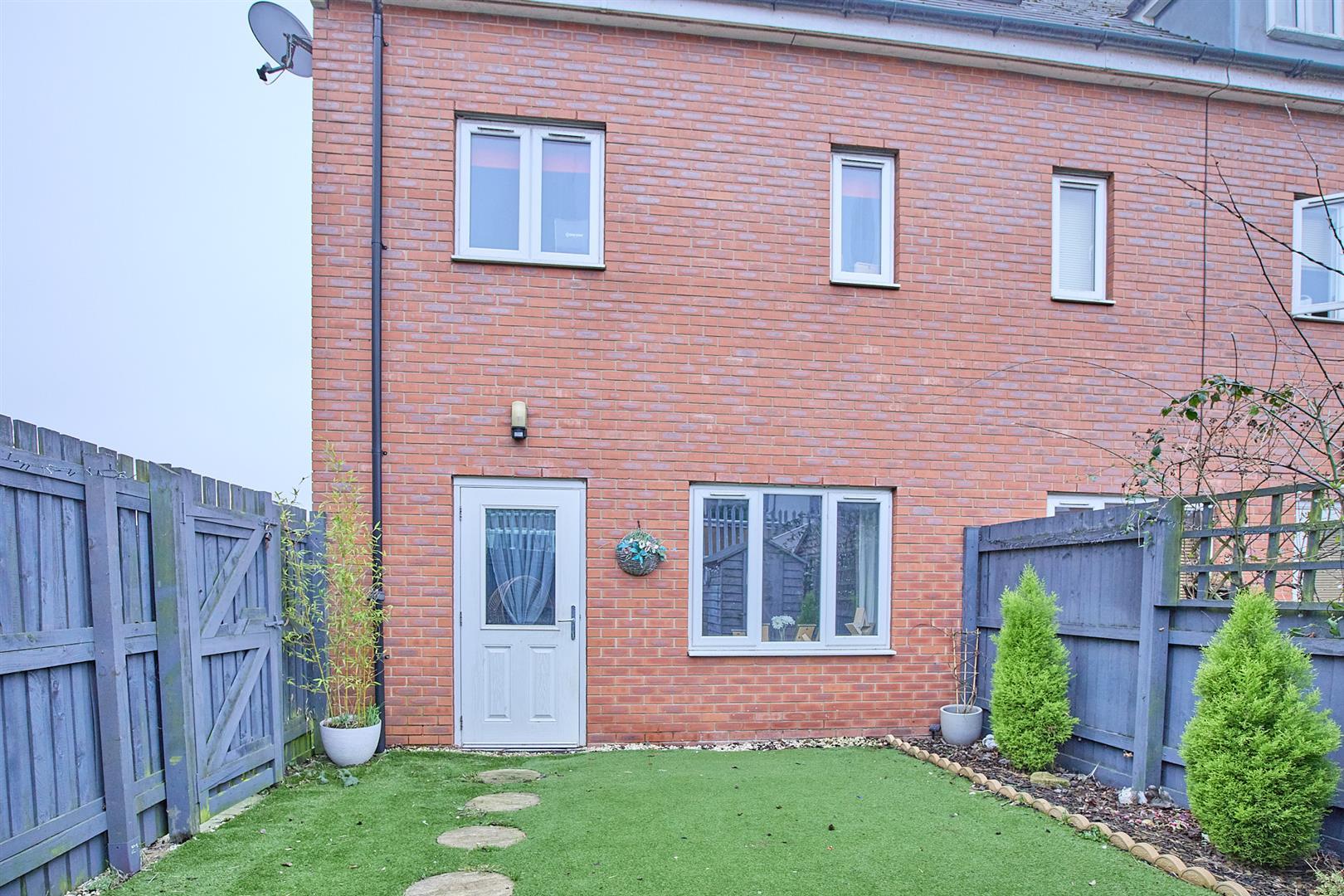 The property is nicely situated in a cul de sac with a tarmacadam driveway to front with lawned area and a slabbed pathway leading to the front door. A pedestrian gate offers access to the fenced and enclosed rear garden which is laid in Astroturf and a slabbed patio to the top of the garden with a shed.