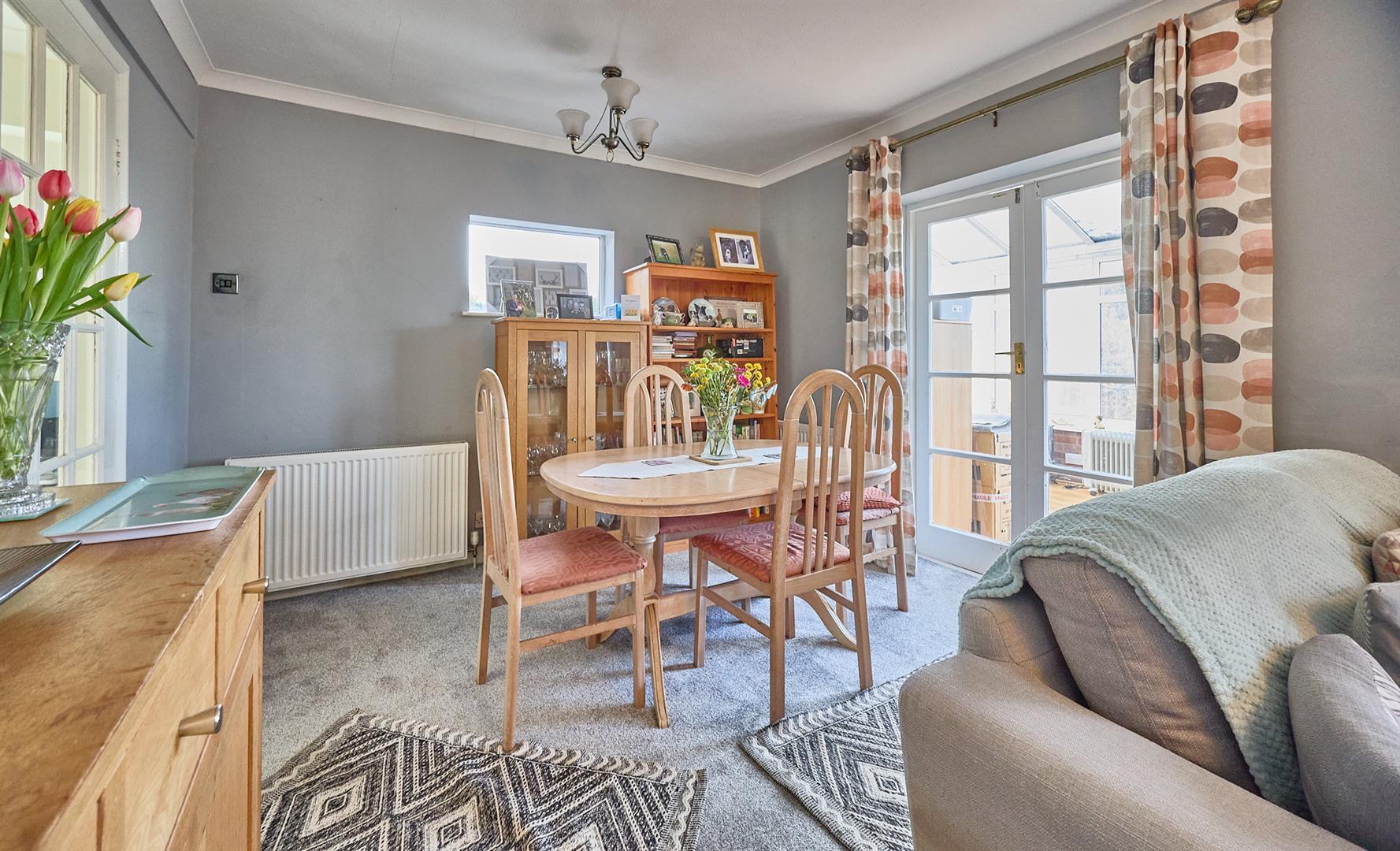 With feature stone finish fireplace incorporating a living flame pebble effect gas fire, single panelled radiator, TV aerial point and coving to ceiling. White wood panel glazed doors to