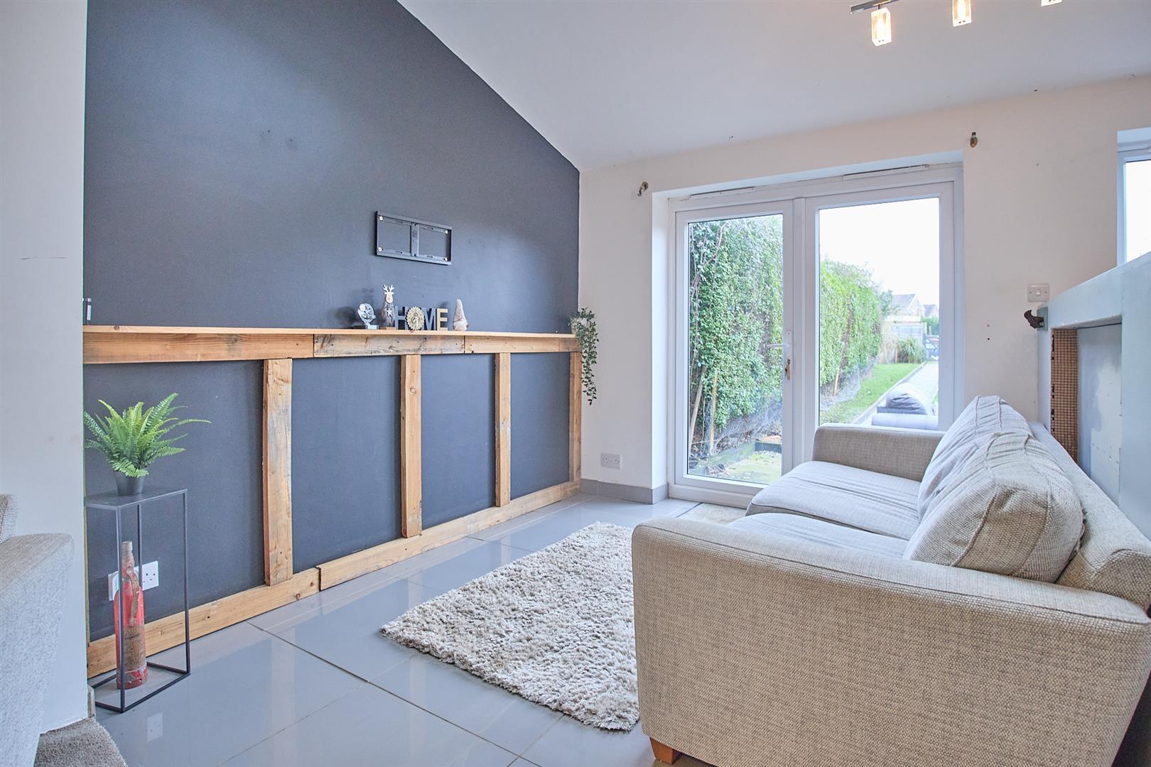 With feature fireplace with tiled hearth and wooden mantle surrounding with log burner. Radiator and TV aerial point.