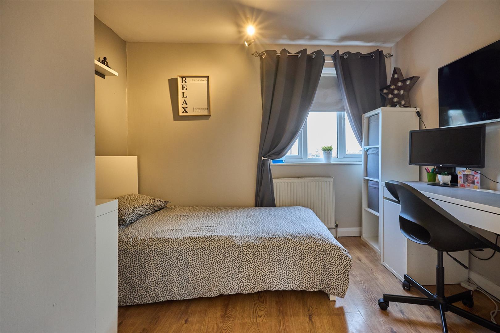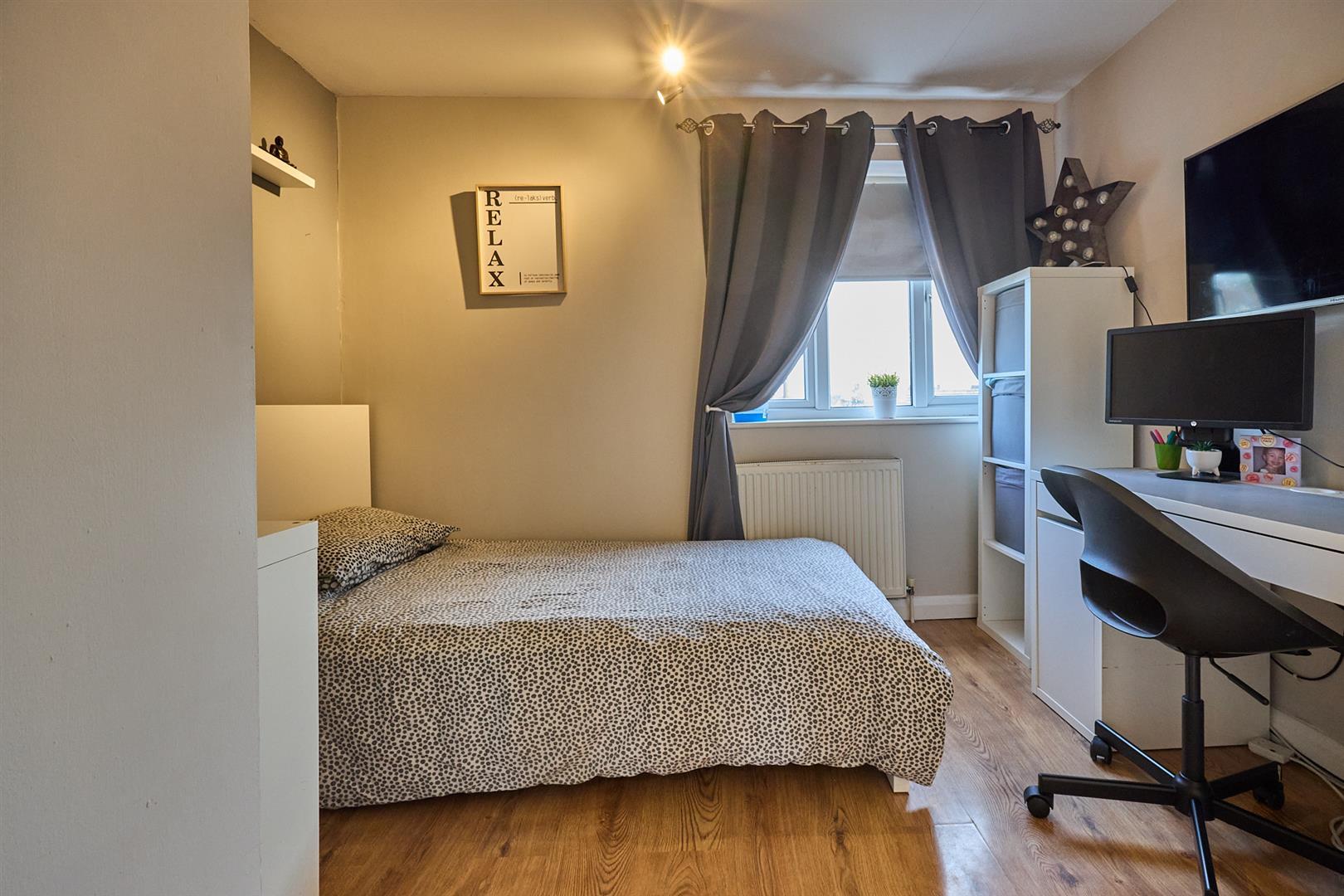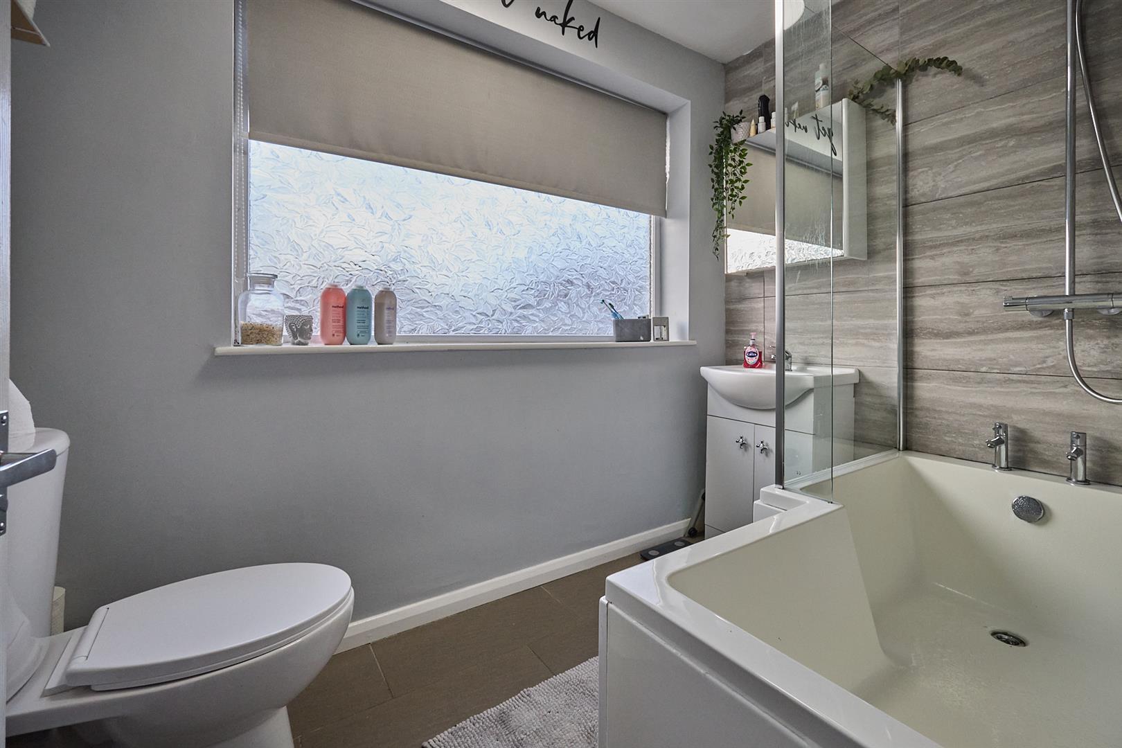 With oak finished laminate wood strip flooring, radiator, door to airing cupboard housing the gas condensing combination boiler for central heating and domestic hot water.