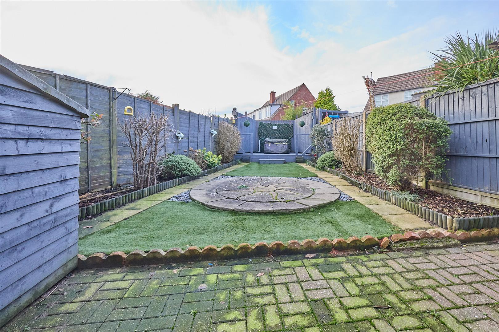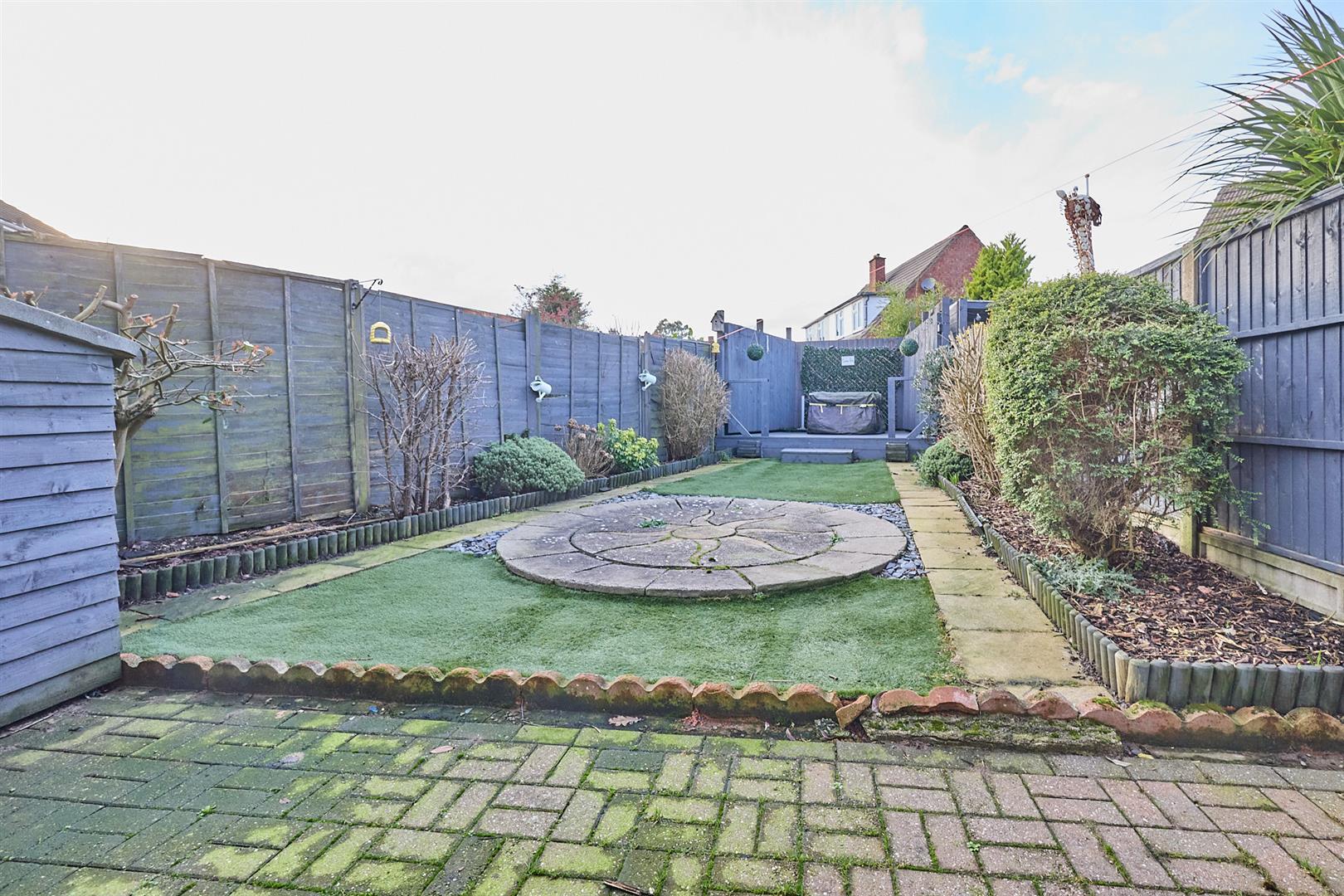 The property is set back from the road having an impressive frontage, a wide Tarmacadam driveway offering ample parking leading down to a single brick built garage (2.46m x 5.16m) with door to front, it also houses the meters, it has light and power, rear pedestrian door and window. A timber gate and block paved pathway leads down the right hand side of the property to the fully fenced and enclosed rear garden which has been hard landscaped having a full width blocked paved patio adjacent to the rear of the property beyond which the garden is in Astroturf and central circular paved area and surrounding raised beds and borders. To the top of the garden is a further raised timber decking patio, cold water tap to the side and front of the property