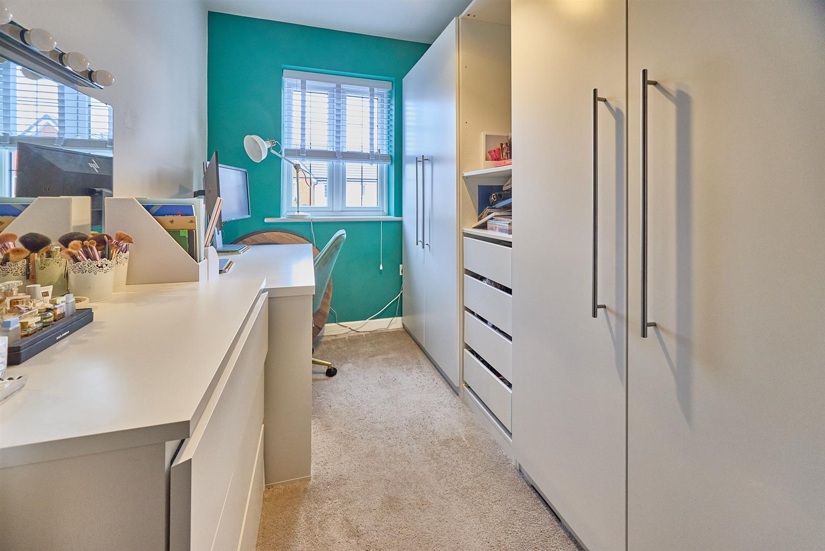 With a range of fitted bedroom furniture consisting of one double and one single wardrobe unit with mirrored glazed doors to front, radiator, TV aerial point. Door to