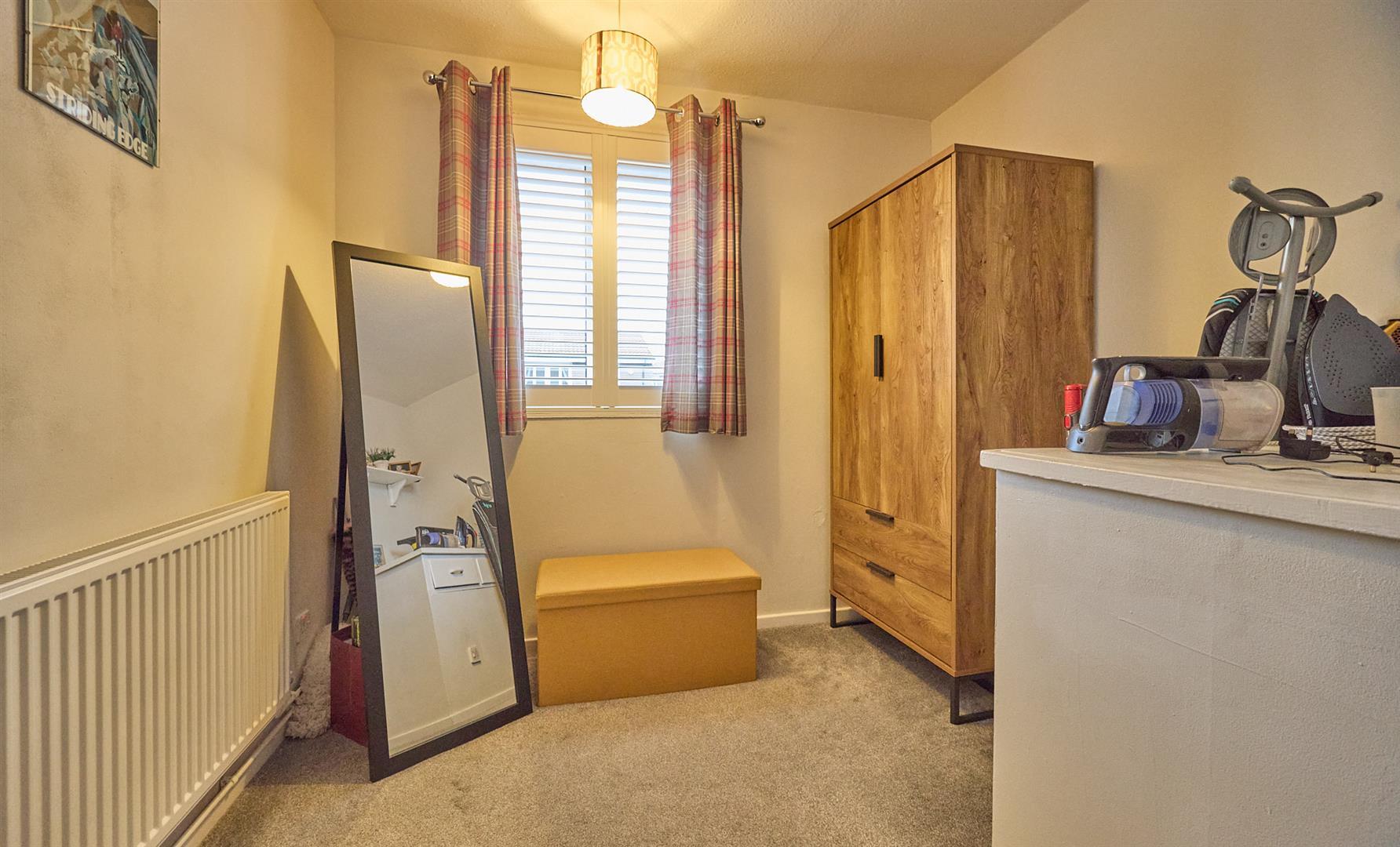 With one double and one single built in cupboard units, radiator and shutters to windows.