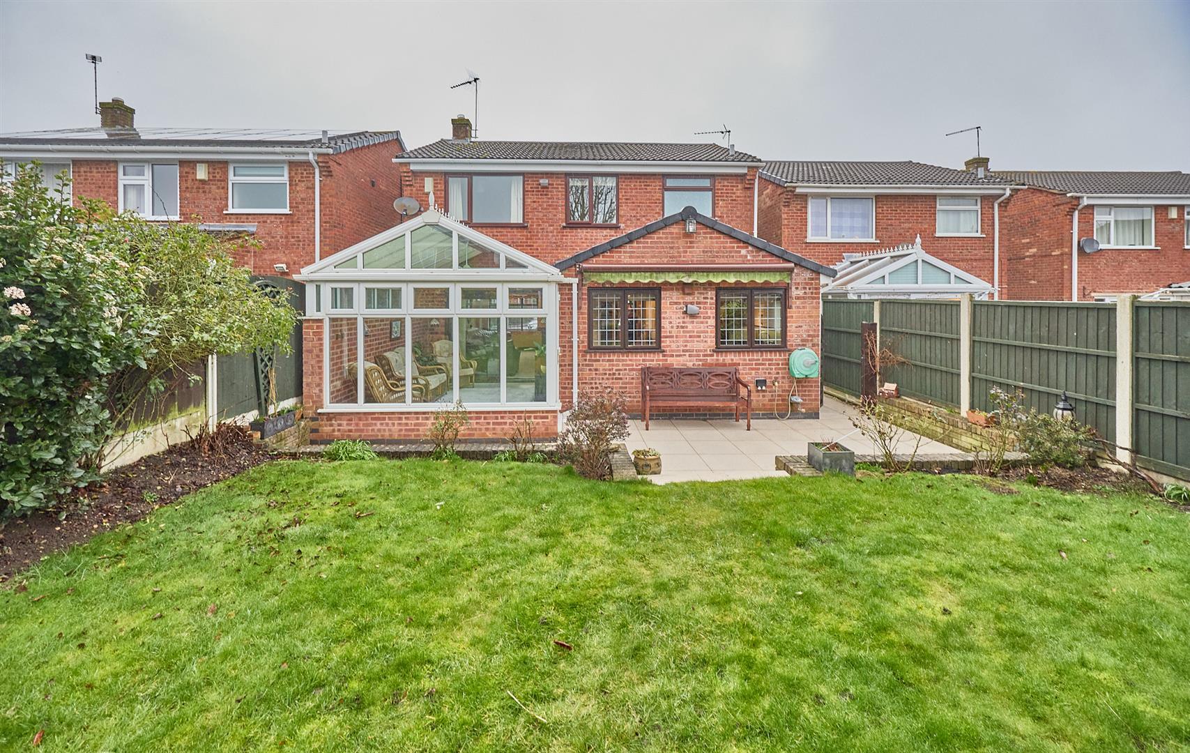 No Chain. Extended and refurbished modern detached family home. Sought after and convenient location within walking distance of a parade of shops, doctors surgery, schools, parks, bus service, the village centre and easy access to the A5 and M69 motorway. Well presented including panelled interior doors, wooden flooring, refitted kitchen and shower room, gas central heating, UPVC SUDG at the rear upstairs of the property and hardwood SUDG and UPVC soffits and fascias to the front and rear downstairs. Spacious accommodation offers reception hall with study area, separate WC, lounge, UPVC SUDG conservatory, open plan living dining kitchen and corridor down to a utility room. Four bedrooms (two with fitted wardrobes) and shower room. Wide driveway offering ample car parking and mature sunny rear garden with summer house and shed. Viewing recommended. Carpets, curtains, blinds, light fittings, Range cooker and American fridge freezer included by negotiation.
