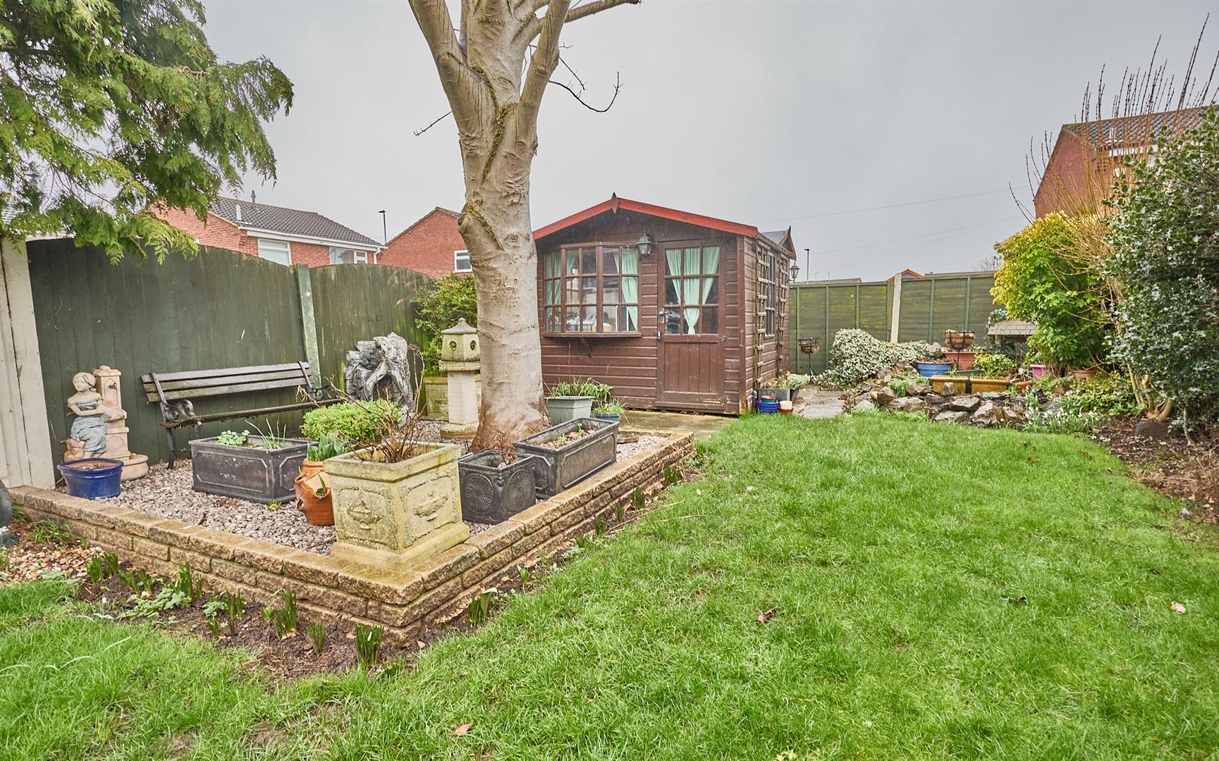 The property is nicely situated set well back from the road having a full width block paved driveway to front offering ample car parking, a timber gate and porcelain tiled pathway lead down the left hand side of the property where there is outside lighting leading to the fully fenced and enclosed rear garden which has a full width porcelain tiled patio adjacent to the rear of the property where there is an outside tap, power point and lighting, edged by a low brick retaining wall beyond which the garden is principally laid to lawn with surrounding beds. There is also a rockery to the top of the garden. To the top of the garden is a further stoned seating area with tree to centre, timber summer house and shed with light and power. The garden has a sunny aspect.