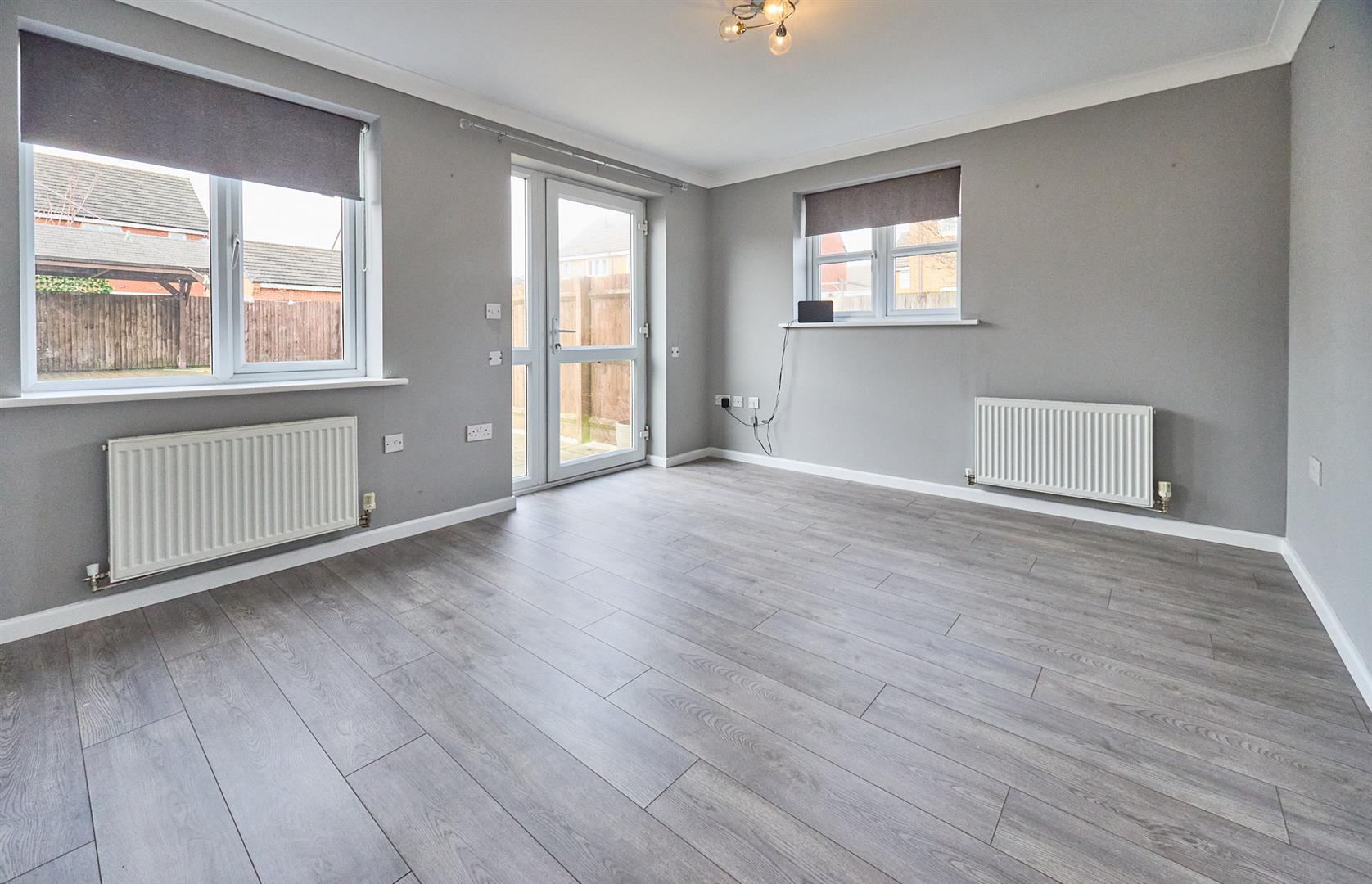 With grey oak finished laminate wood strip flooring, two radiators, TV and telephone points and also a power point for a wall mounted flat screen TV, coving to ceiling, useful under stairs storage cupboard with fitted shelving, lighting, grey oak finished laminate wood strip flooring, UPVC SUDG french door leading to the rear garden.
