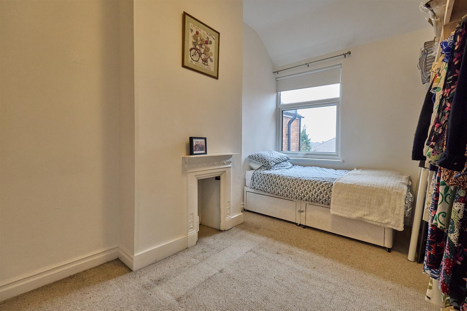 with feature Victorian white cast iron fireplace. Radiator. Built in wardrobe over the stairs.