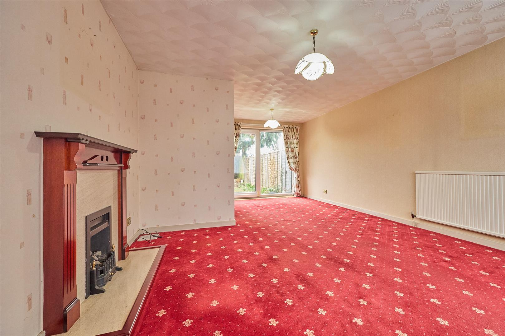 With feature fireplace with wooden surround with marble hearth and backing, two single panel radiators, TV aerial point, UPVC SUDG sliding doors to the rear garden.