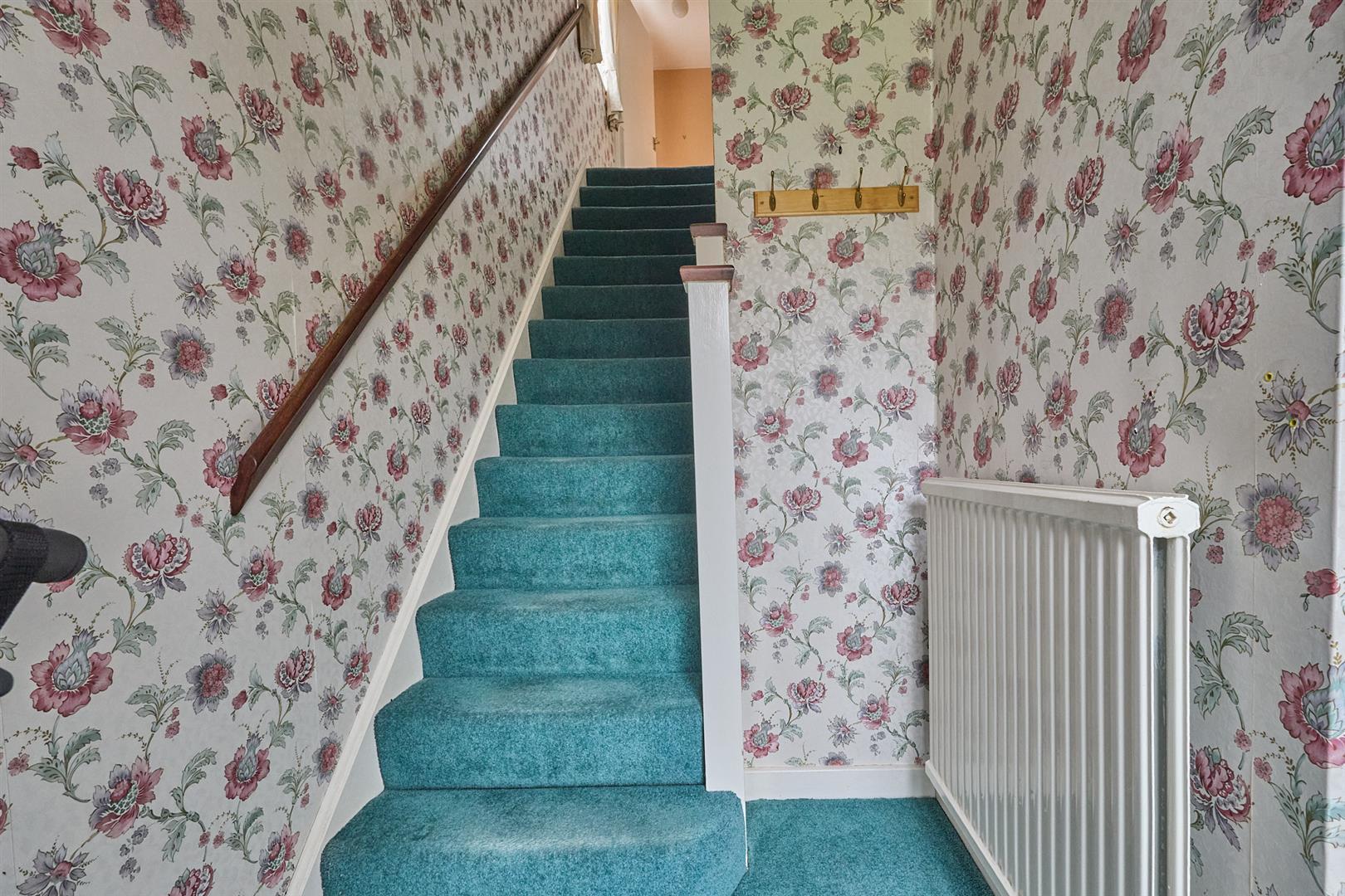 With stairway to first floor, double panelled radiator, attractive white panelled interior door to